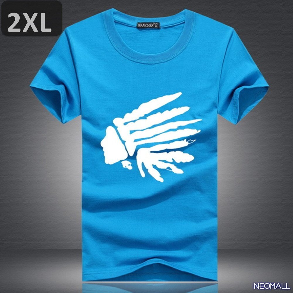 夏の定番 ☆ 丸首 半袖 Tシャツ【462】 ブルー 2XLサイズ トップス シャツ シンプル イラスト デザイン 春夏