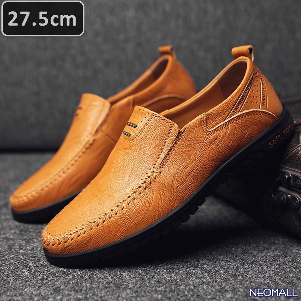 人気商品 ☆ メンズ ビジネス 牛皮 シューズ ライトブラウン サイズ 27.5cm 革靴 靴 カジュアル 屈曲性 通勤 軽量 【625】