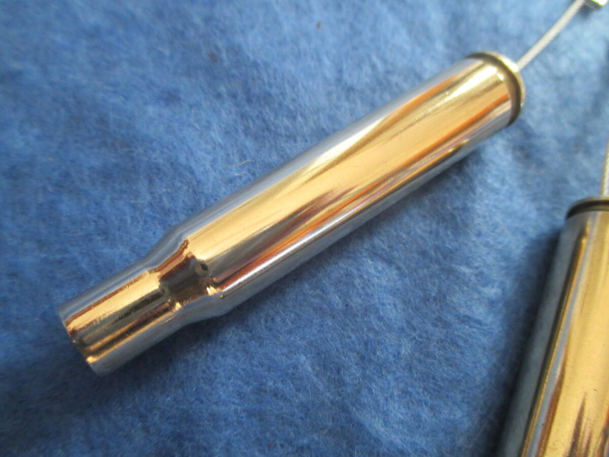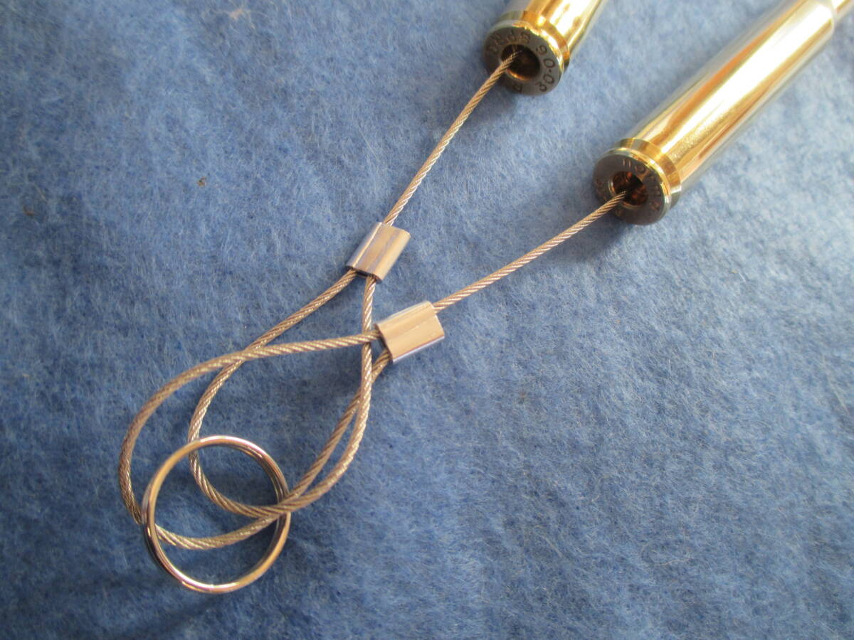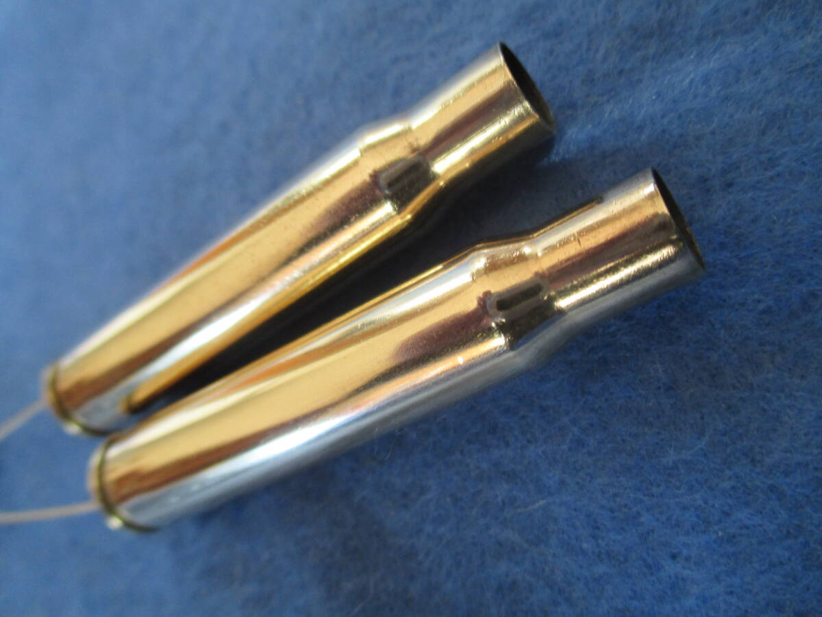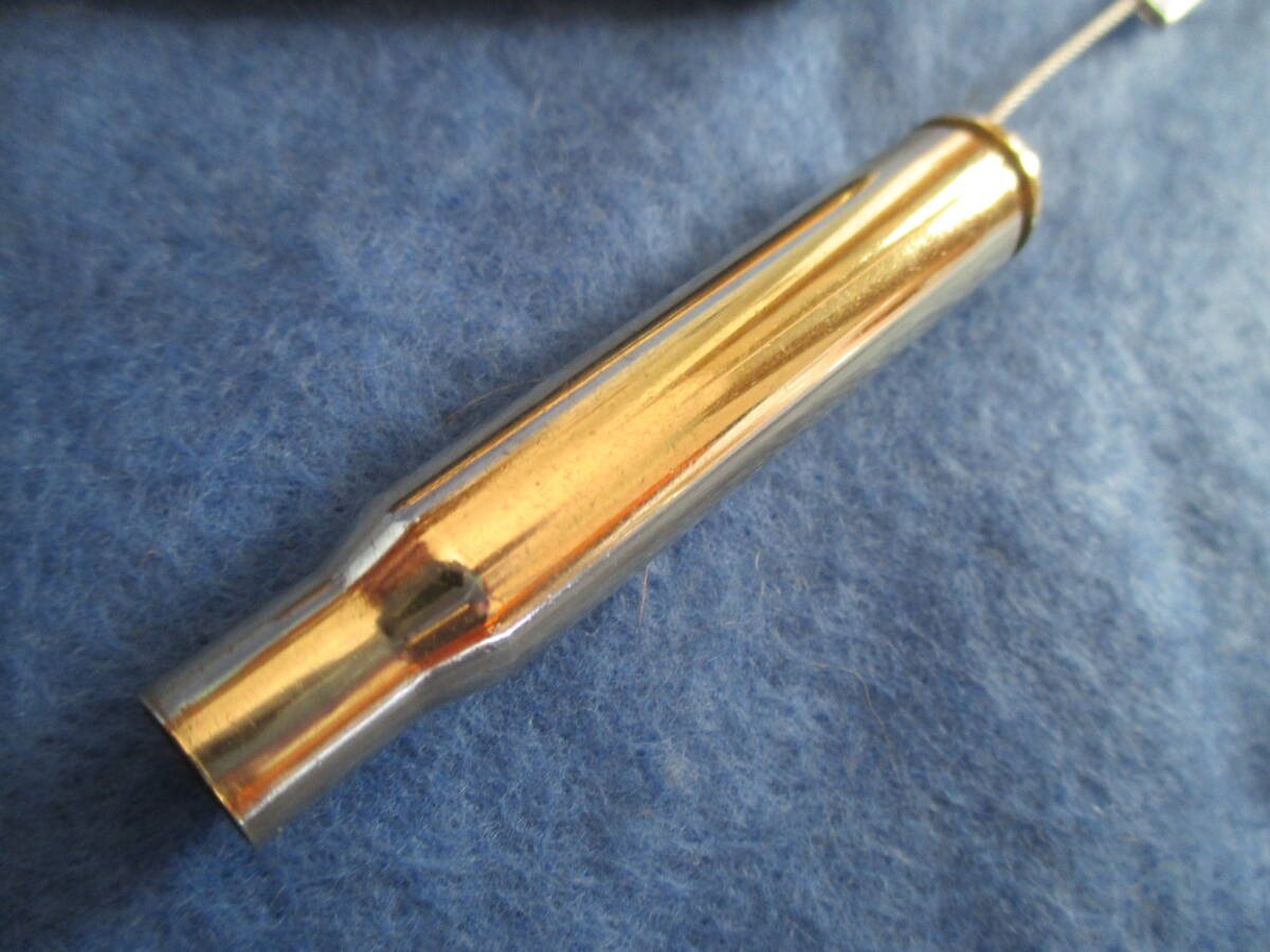 実銃のライフル銃の薬莢を使った熊鈴です。