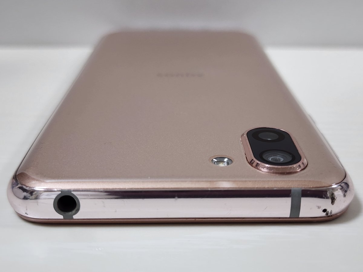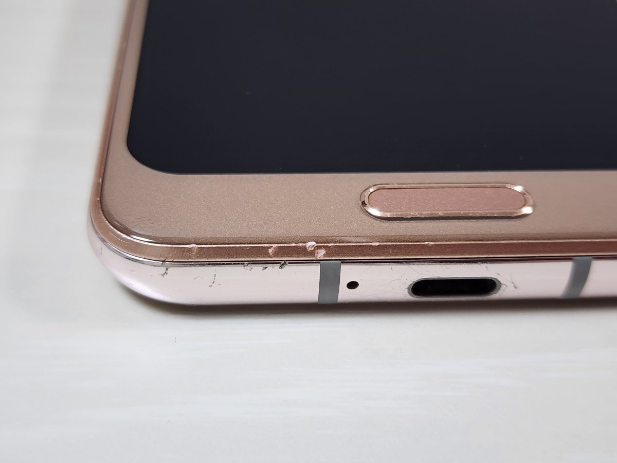 【外装状態】: C 液晶面は画面全体に小傷があります。背面はこすれ傷、大きい傷が目立ちます。アウトカメラレンズの縁に小傷がついています。側面はところどころに打痕、小傷が見られました。充電の差込口に細かな傷があります。