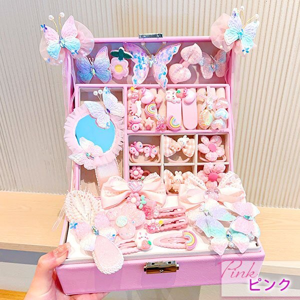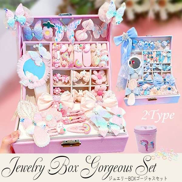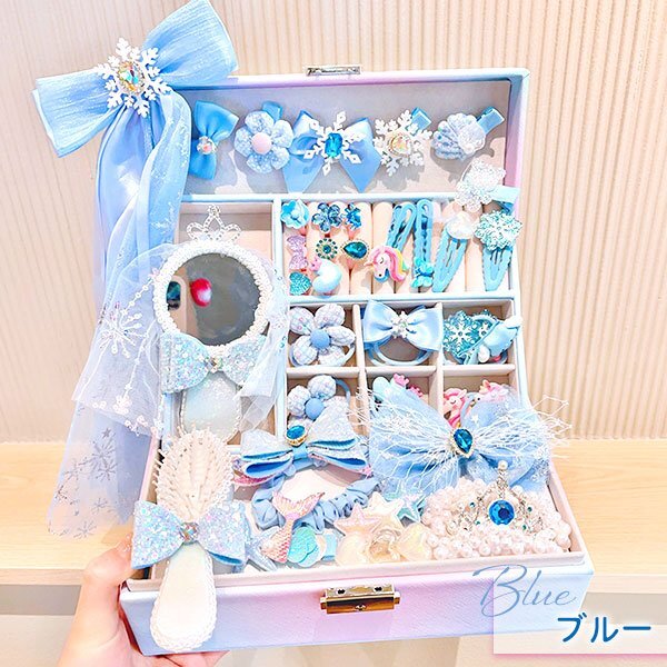 ☆ジュエリー BOX ゴージャス セット☆ ※落札しましたらご希望のデザイン(セット内容)をオーダーフォームにご記入下さい。 【デザイン】 ・ブルー ・ピンク 【商品名】 ジュエリー BOX ゴージャス セット 【商品説明】 キュートなジュエリーボックスが登場! 鍵付きだから大切なおしゃれアイテムをしっかり守れます。 中にはヘアピンやカラフルなヘアゴム、可愛いアクセサリー、ミラー付きコーム、キラキラの子供用リングなど、 夢のようなアイテムがぎゅっと詰まっています。 三重構造だから整理もしやすく、見た目もスッキリ。 おしゃれ心を育むだけでなく、大切なものを自分で管理する習慣も自然と身につきます。 お誕生日や特別な日のプレゼントにもぴったりなこのジュエリーBOX。 お子さまの「宝物」を詰め込むワクワクの空間を、ぜひプレゼントしてみませんか? 【セット内容】 「ブルー」 リボンヘアピン1個/青いヘアピン 14個/青いヘアゴム 10本/王冠ヘアゴム2本/ミラーコーム 2個/子供用リング 8個 「ピンク」 リボンヘアピン1個/ピンクのヘアピン 16個/ピンクのヘアゴム10本/花のヘアゴム 2本/ミラーコーム 2個/子供用リング 8個 ・ユニコーン缶…カラフルシリコンゴム 【サイズ】 収納ケース:約17×23×8.7cm ユニコーン缶:約8×7.5×9cm アクセサリー:商品画像をご参照ください |