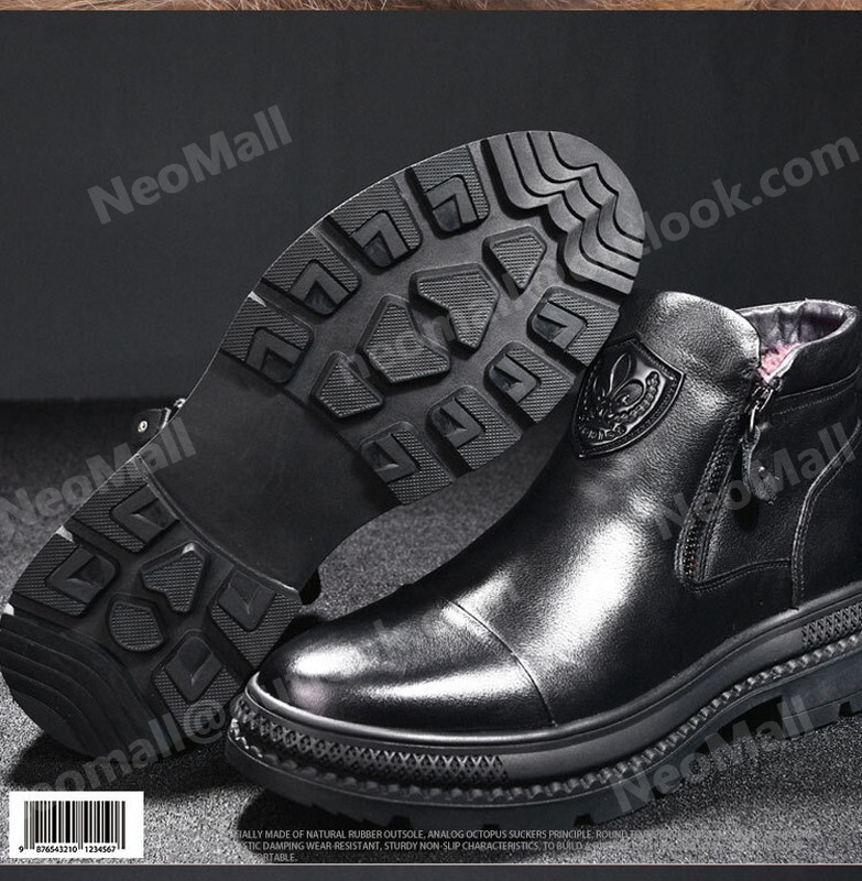 本革 牛革 メンズサイドジッパー付 シュートブーツ ブラック サイズ 24.5cm 革靴 靴 カジュアル 屈曲性 通勤 軽量 インポート品【n024】