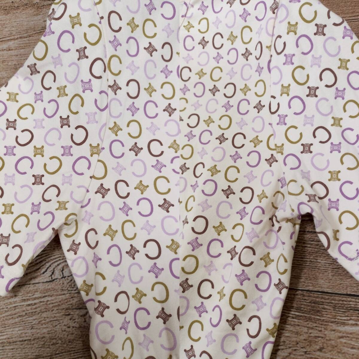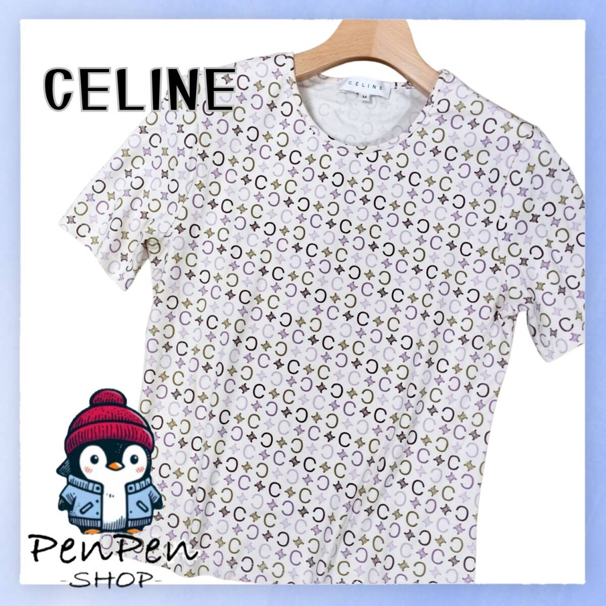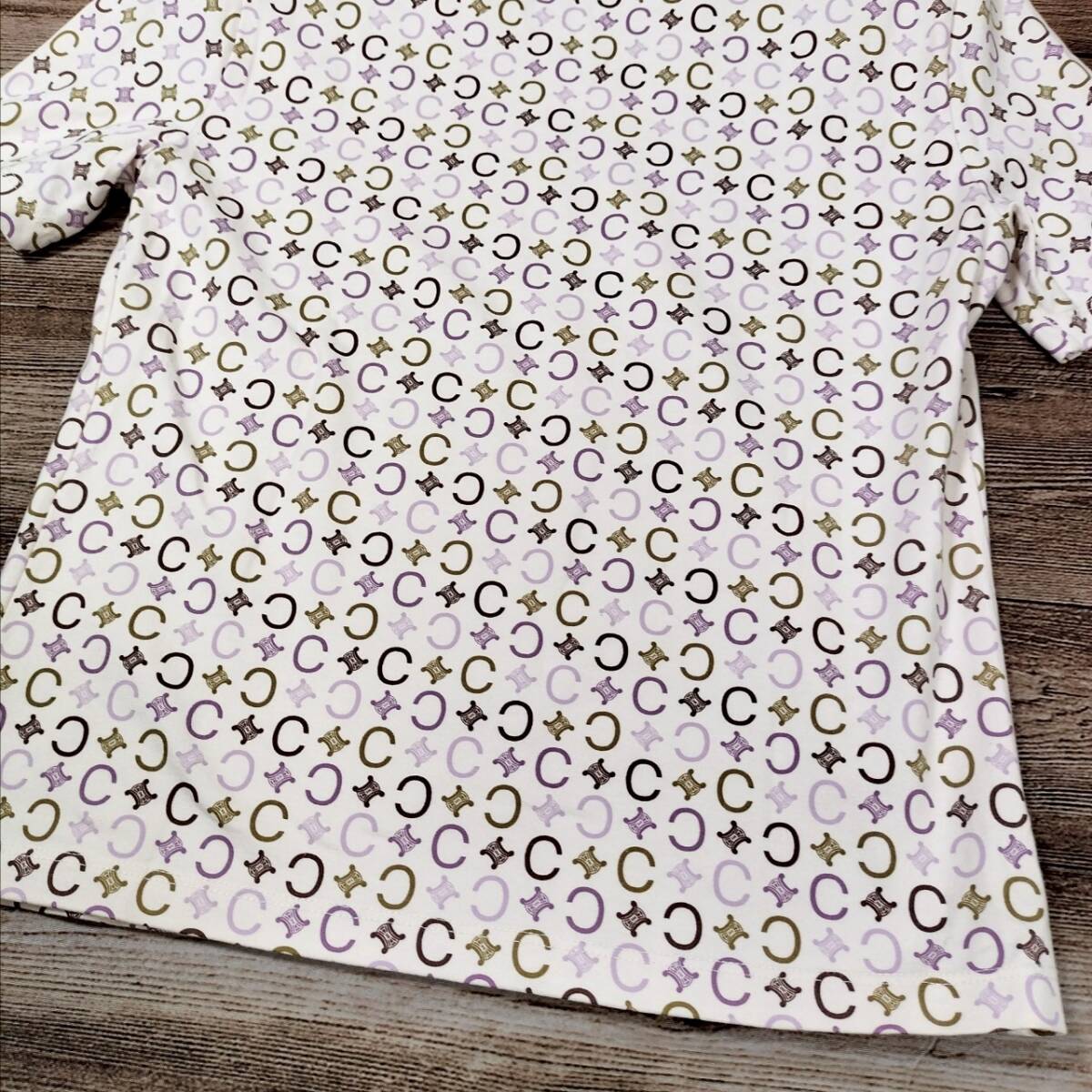 美品 CELINE セリーヌ レディース 半袖 Tシャツ トリオンフ総柄 マルチカラー ホワイト ベージュ パープル コットン100% Mサイズ 高級感