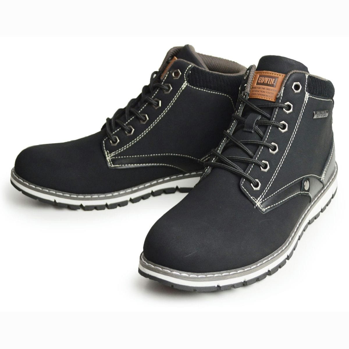 新品■25cm EDWIN 防水 カジュアルシューズ ウォーキングシューズ ハイカット メンズ スニーカー 防滑 雨 レイン 紐靴 エドウィン ロゴ