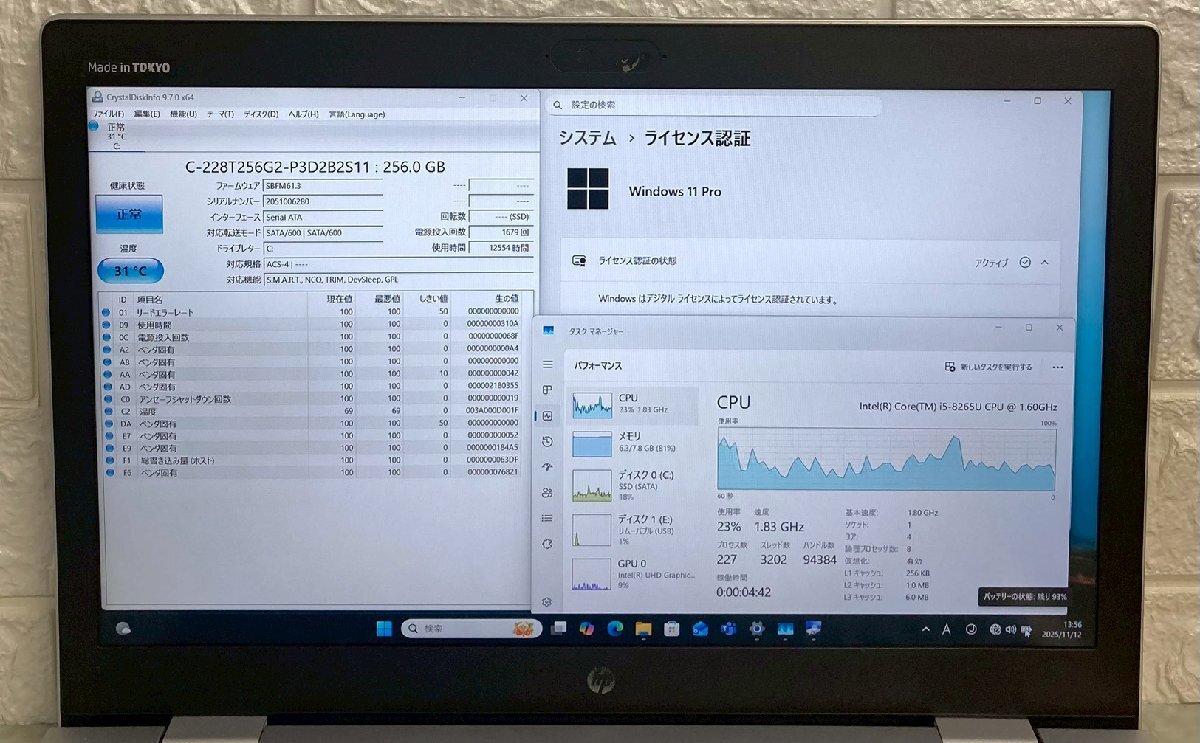 | ライセンス確認 | 〇 | CrystalDiskinfo | 〇 |
