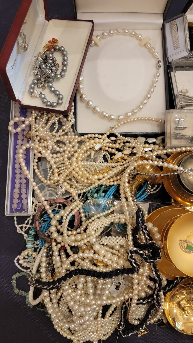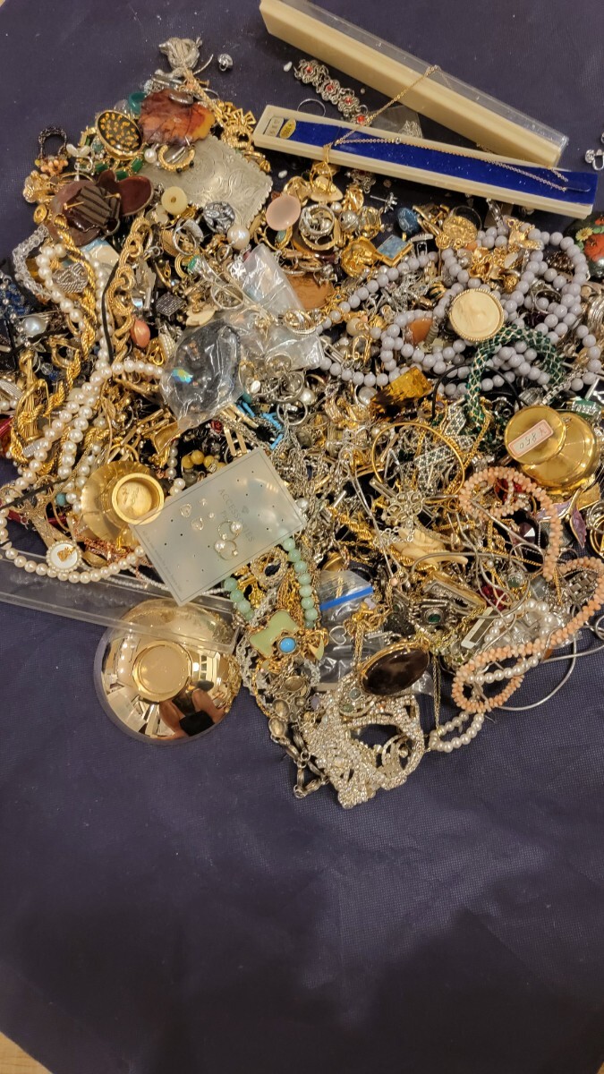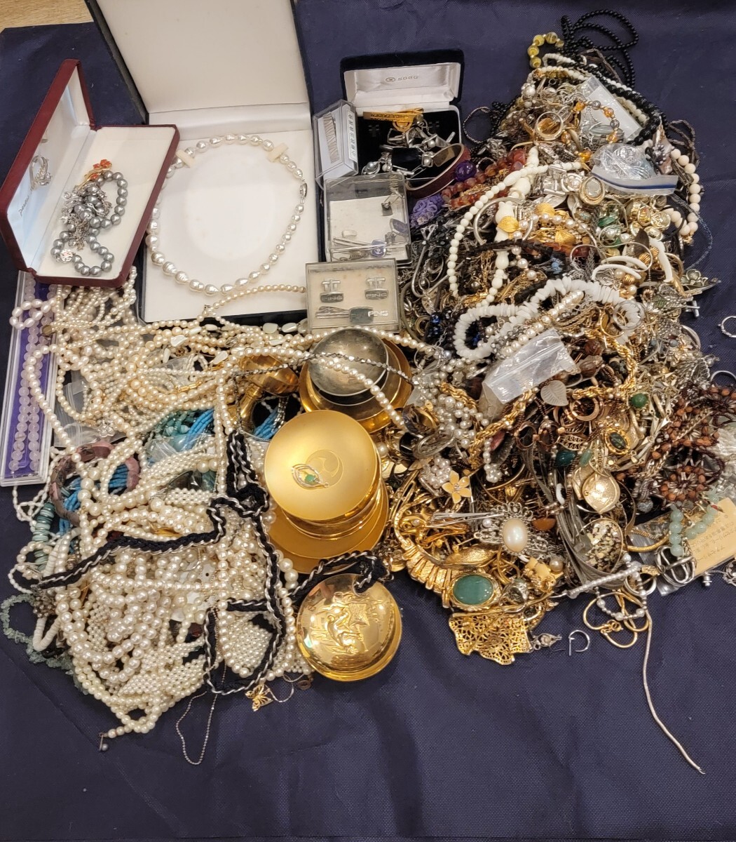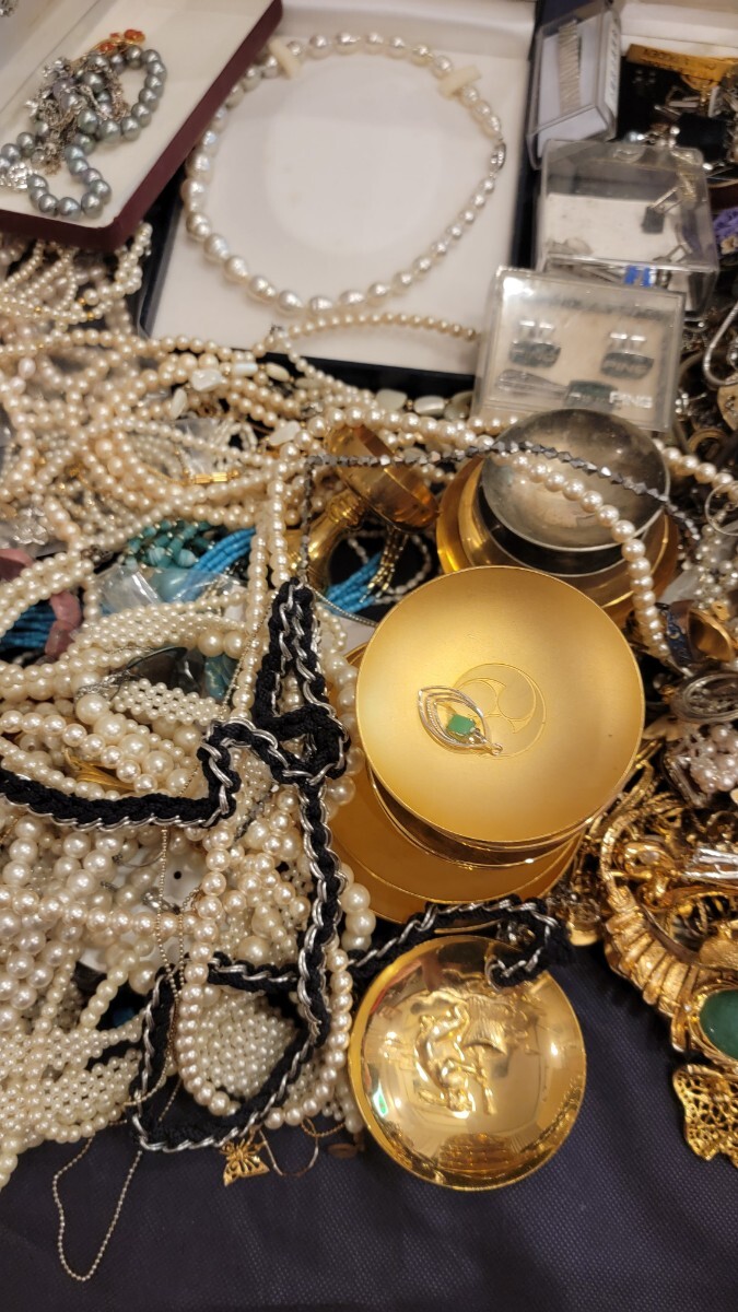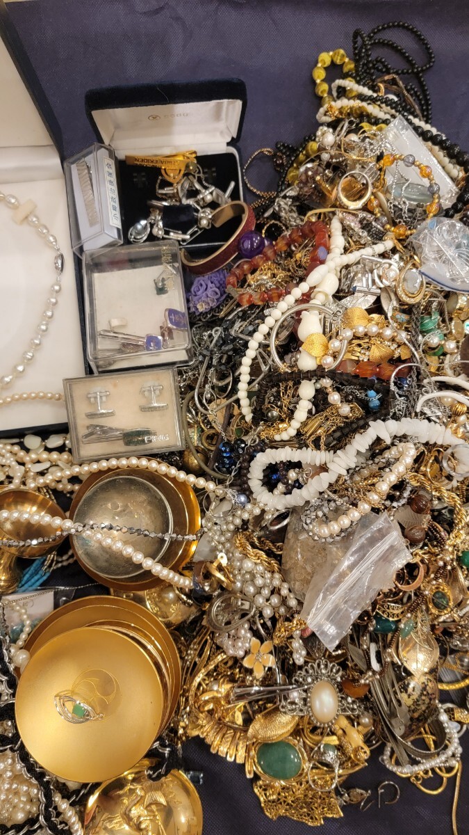 アクセサリー大量まとめ 約14kg メッキ イミテーション パール 石物 ネックレス/カフス/リング等 詳細未検品 盃 k24gp ジャンク