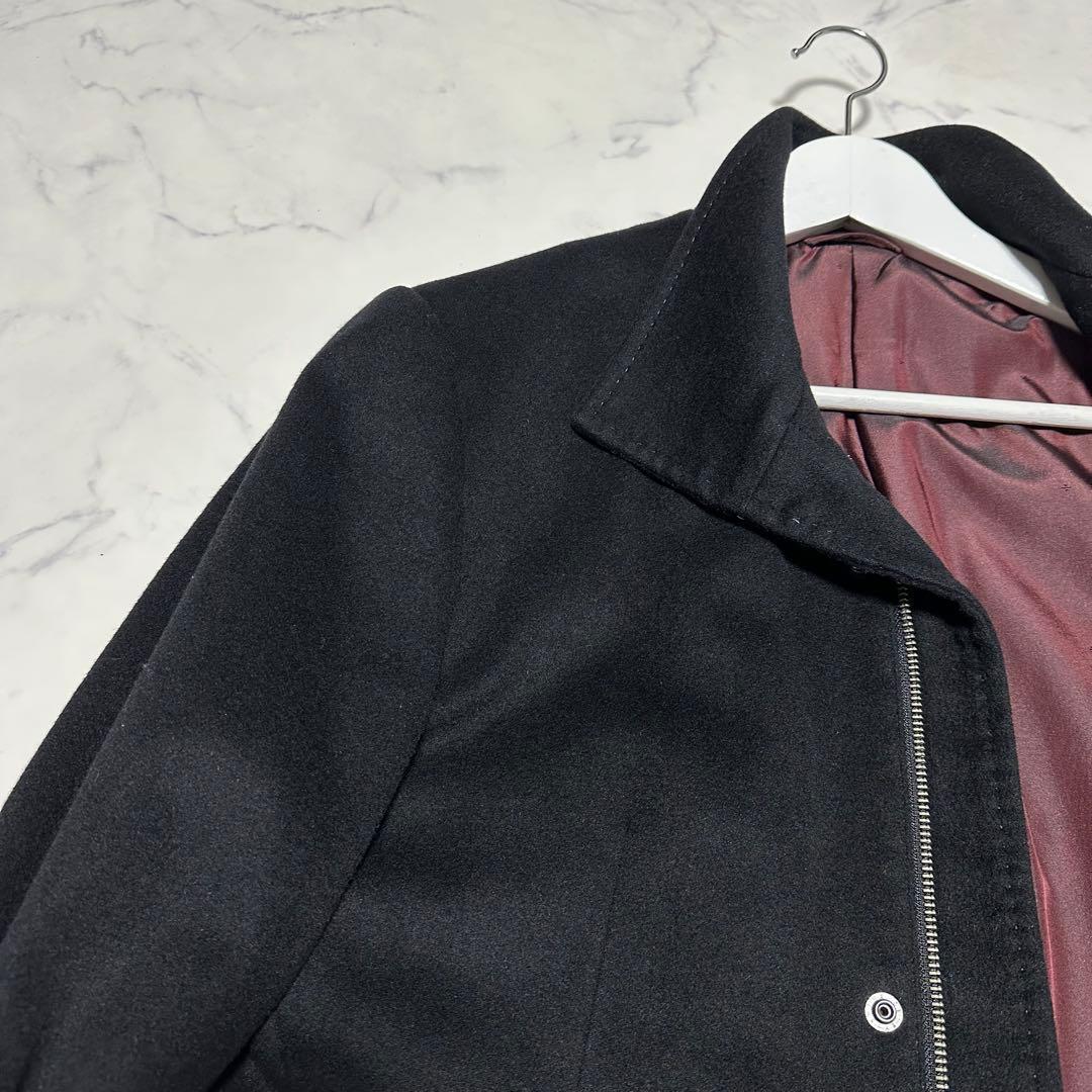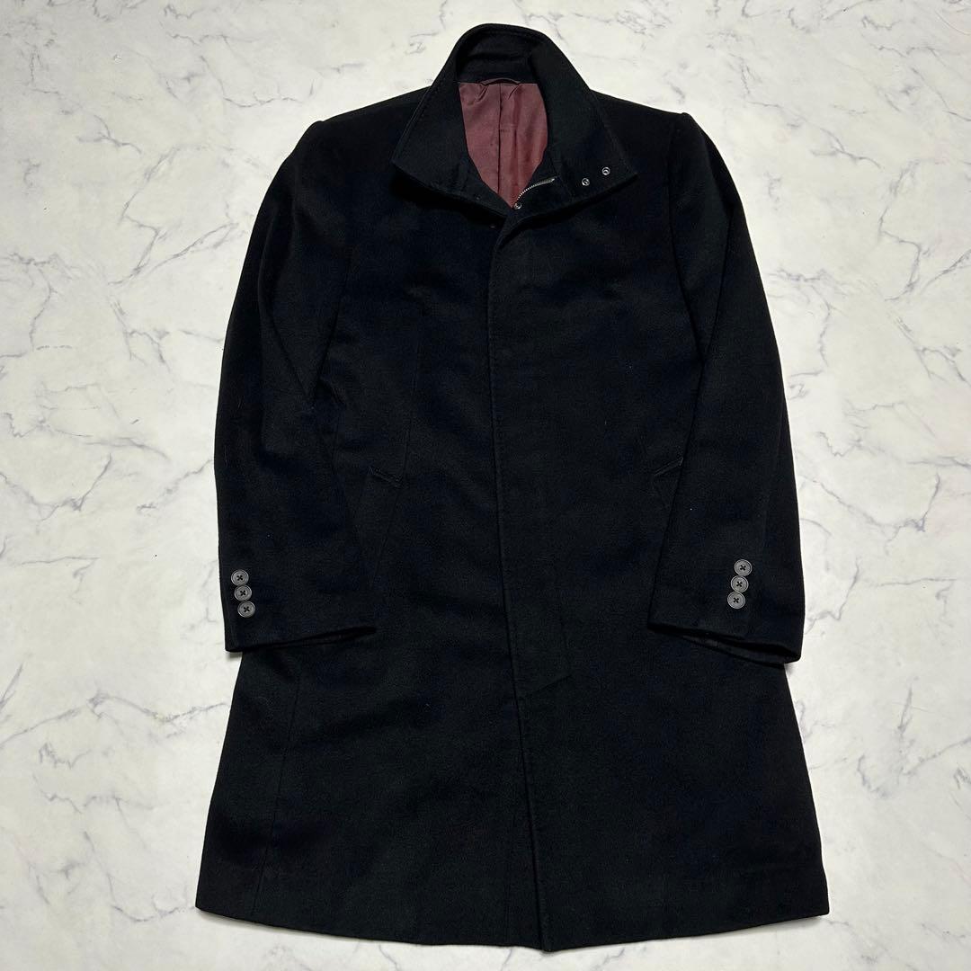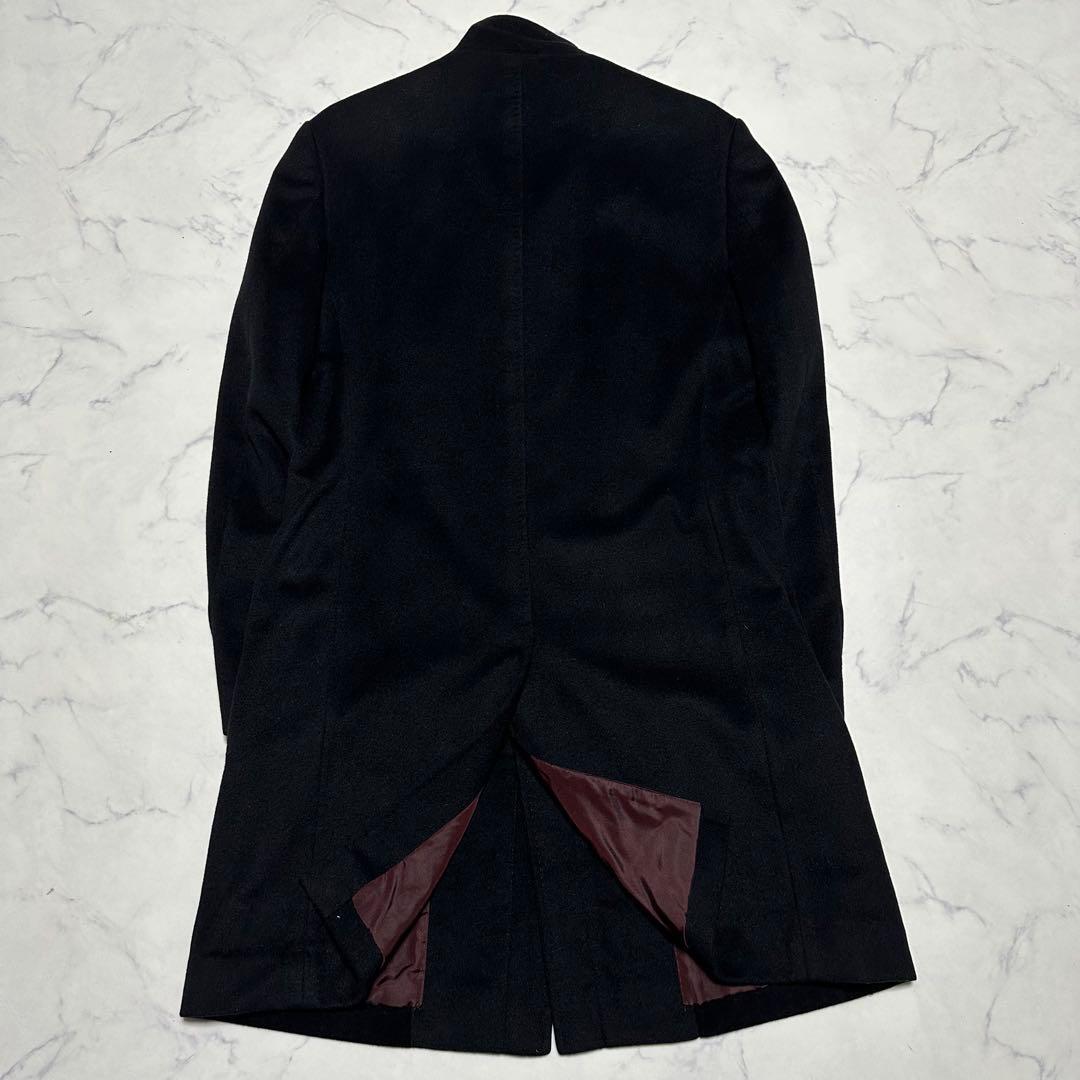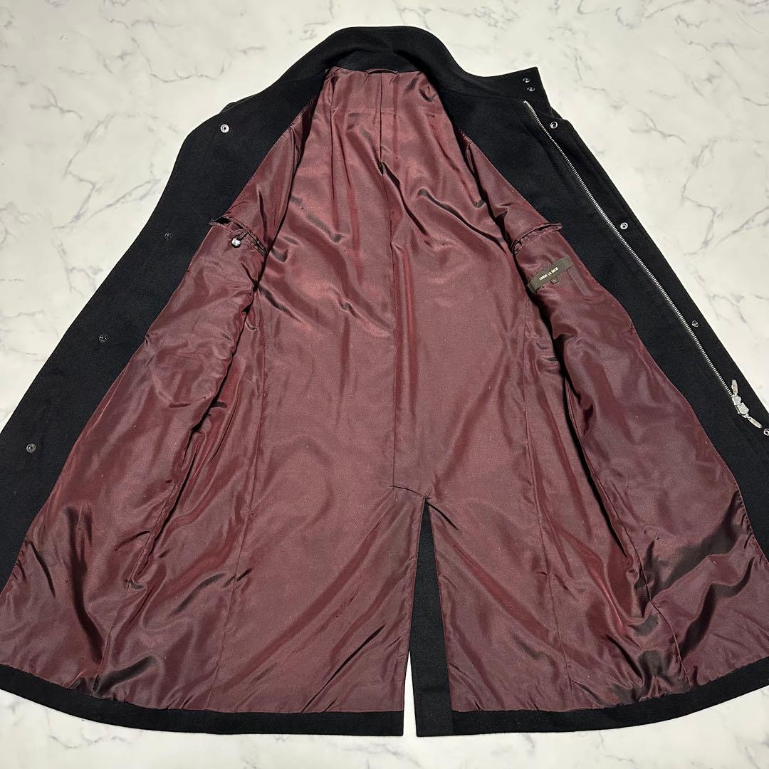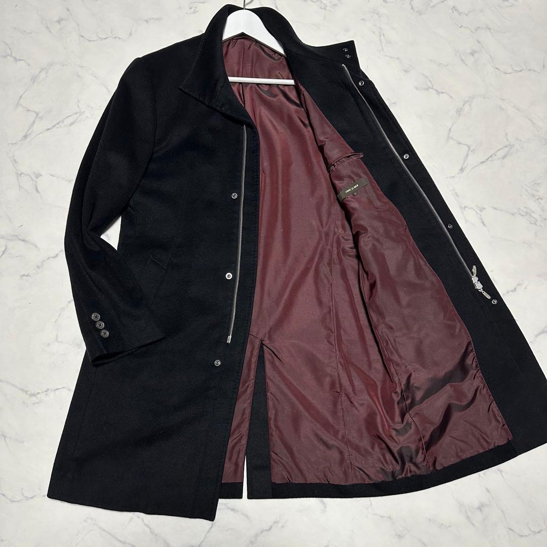 未使用級美品 コムサメン カシミヤ混スタンドカラーコート ブラック 裏地ボルドー 黒 ワインレッド エンジ サイズL