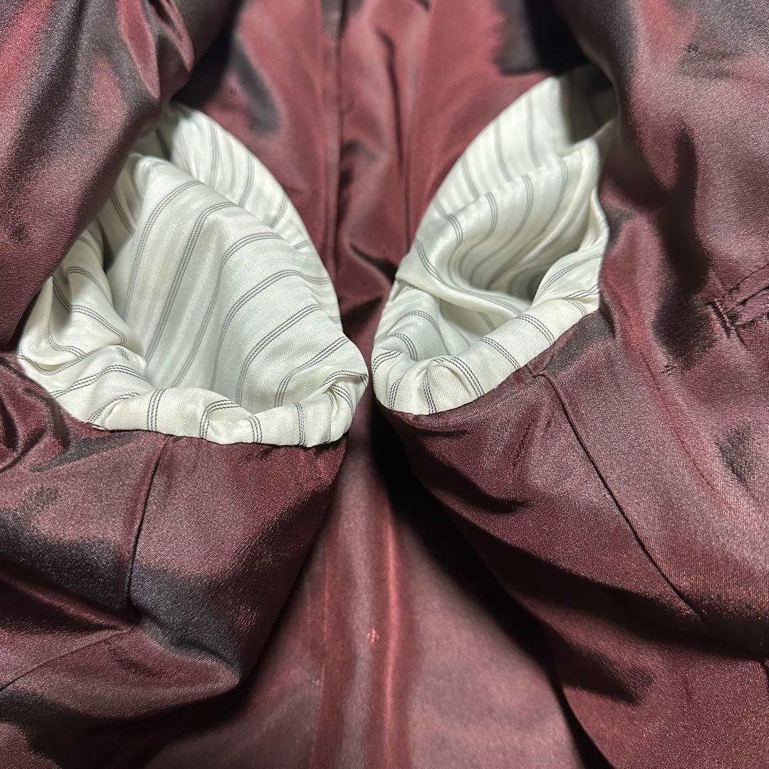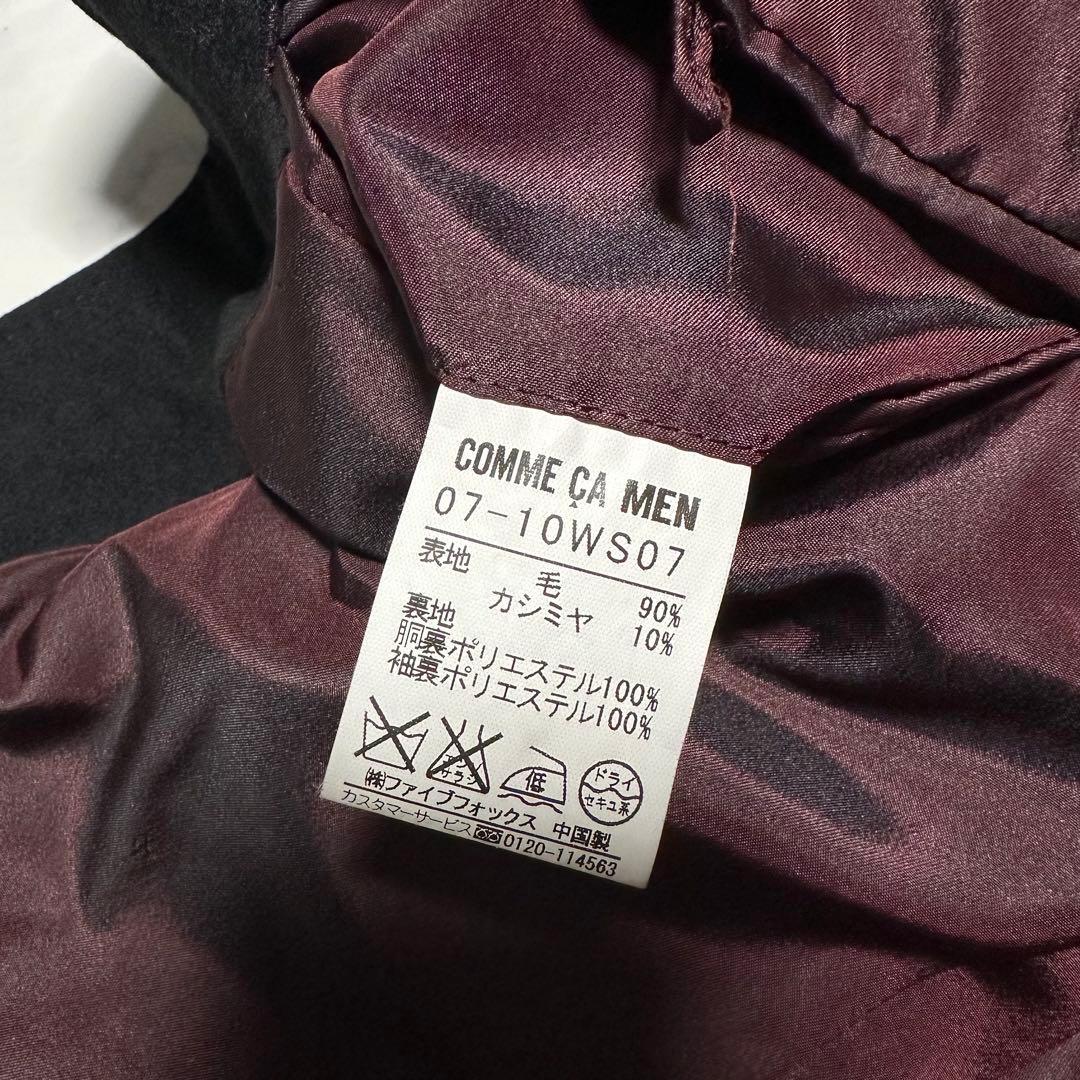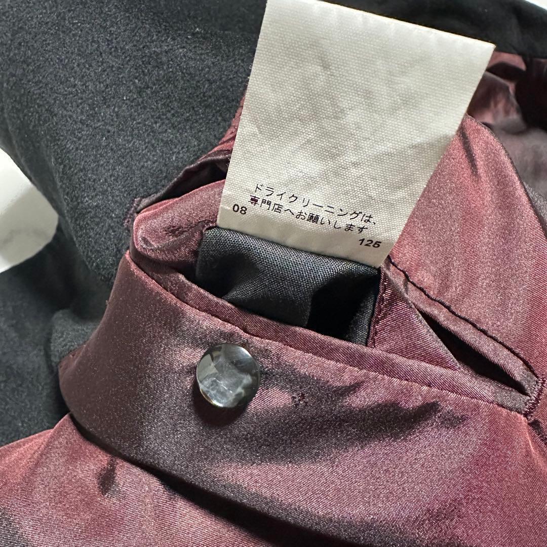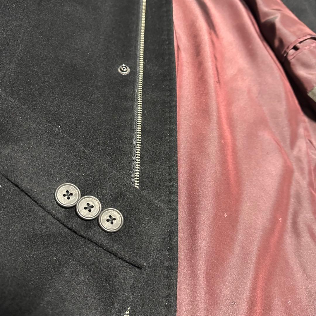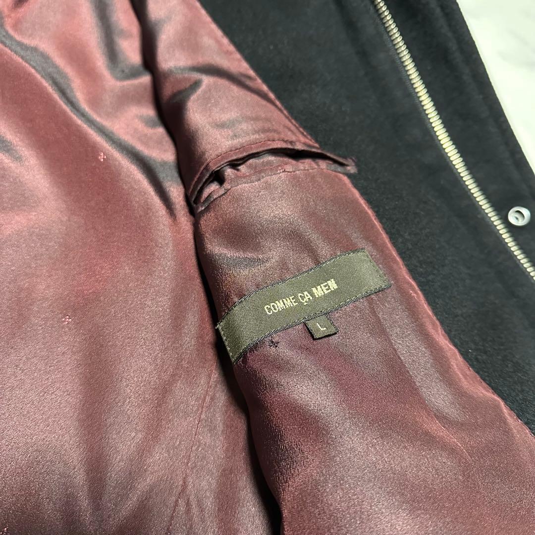 未使用級美品 コムサメン カシミヤ混スタンドカラーコート ブラック 裏地ボルドー 黒 ワインレッド エンジ サイズL