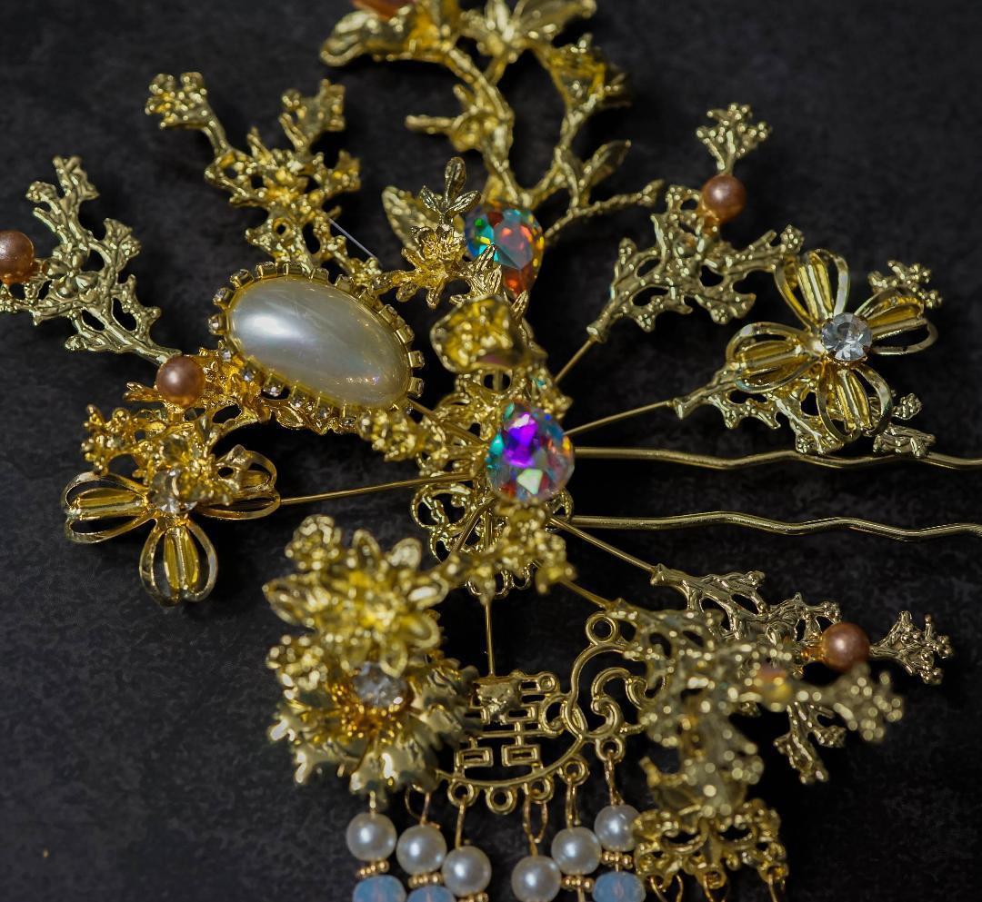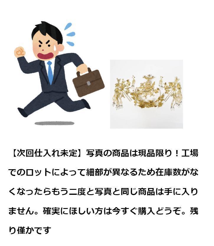 【つかいかた】かんざし部分は、重みがありますので、落ちやすいです。お手持ちのピンでとめるとさらにしっかりとまります。 用途は女性の華服・韓服・漢服・中国服・コスプレ・唐装などに。もちろん、古代の結婚式などにもおススメです。存在感がありつける場所を変えることで和装や花魁の衣装にも合います。