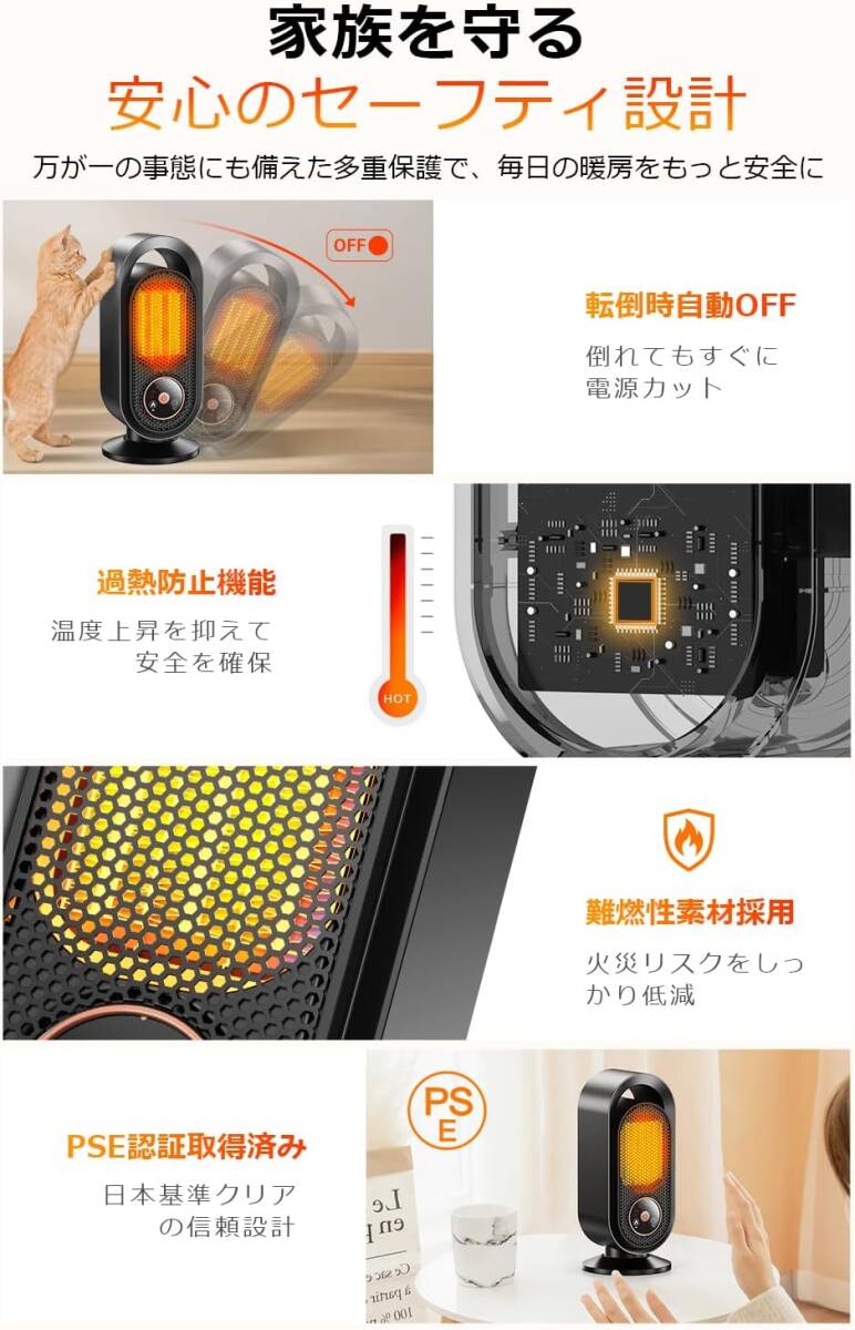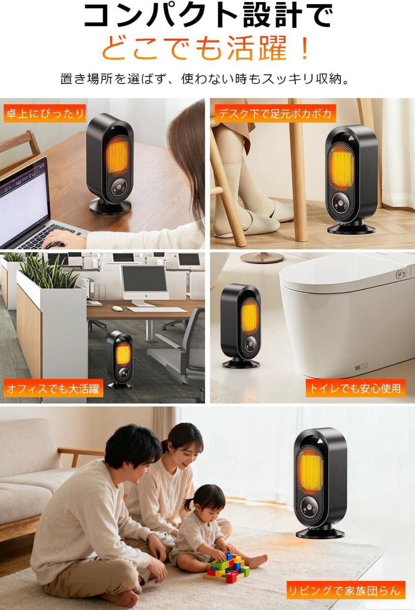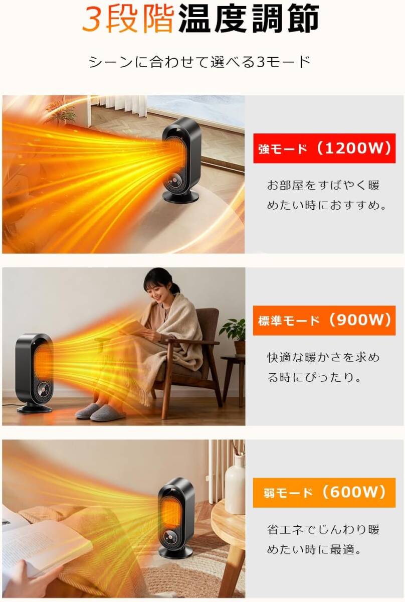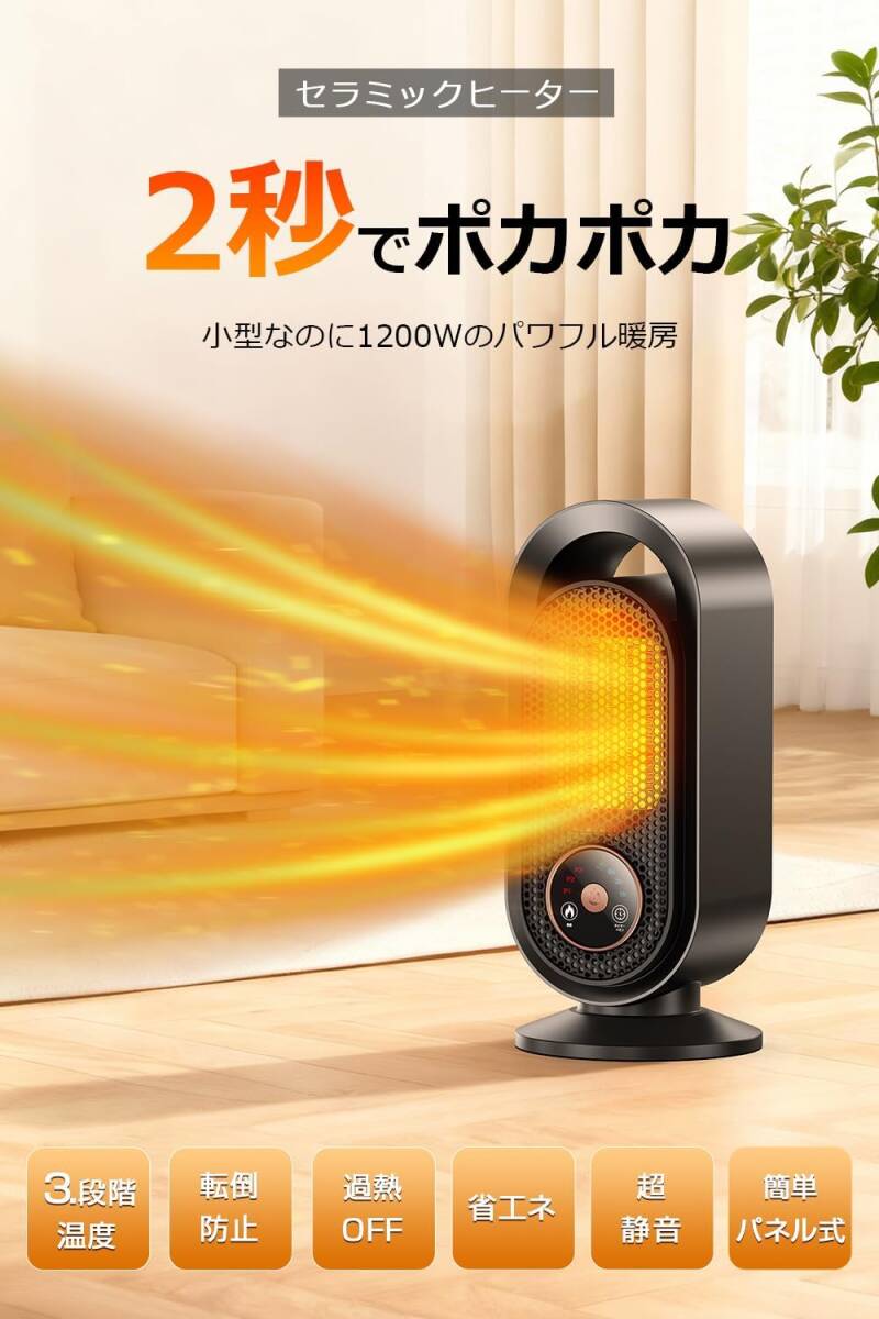 セラミックヒーター 【2026冬新開発・LCDディスプレ表示・マイナスイオン】 セラミックファンヒーター 小型 2秒速暖 1200W