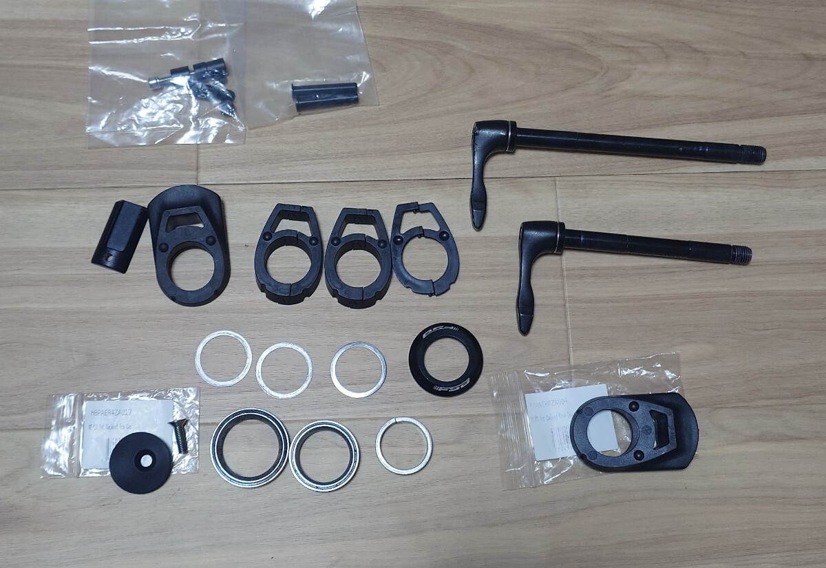スルーアクスルは純正レバー付き、純正六角穴(6mm)の2つ付けています。