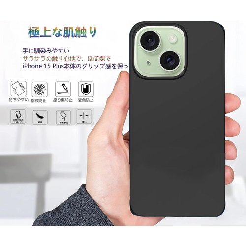 極薄 iphone15plus 用 ケース 薄型 iphone 15 plus 用 ケース PCマット質感 超軽量 黄変防止 指紋防 擦り傷防止 手触り良い 全面保護 超耐磨 耐衝撃アイフォン 15 Plus用 カバー ワイヤレス充電対応 ブラック 1109