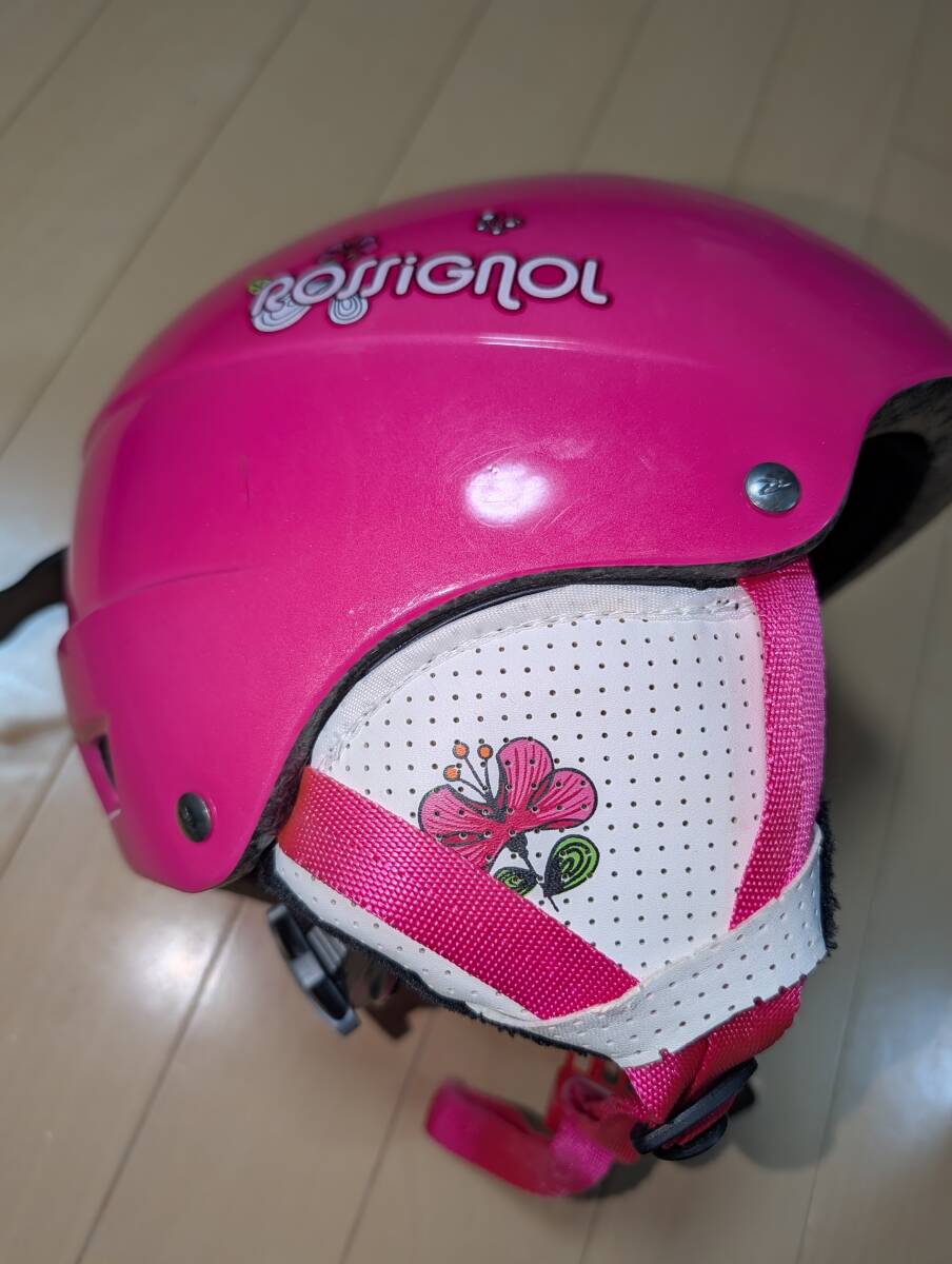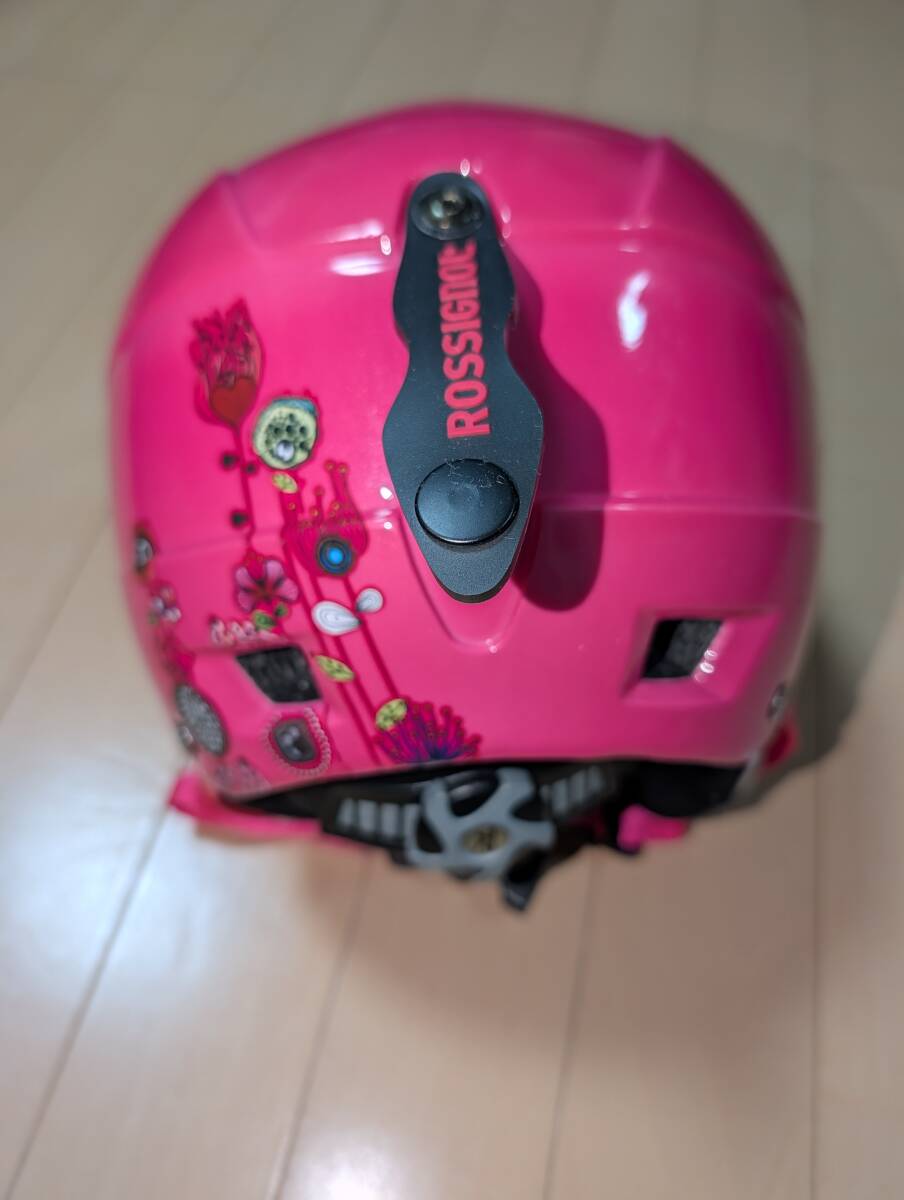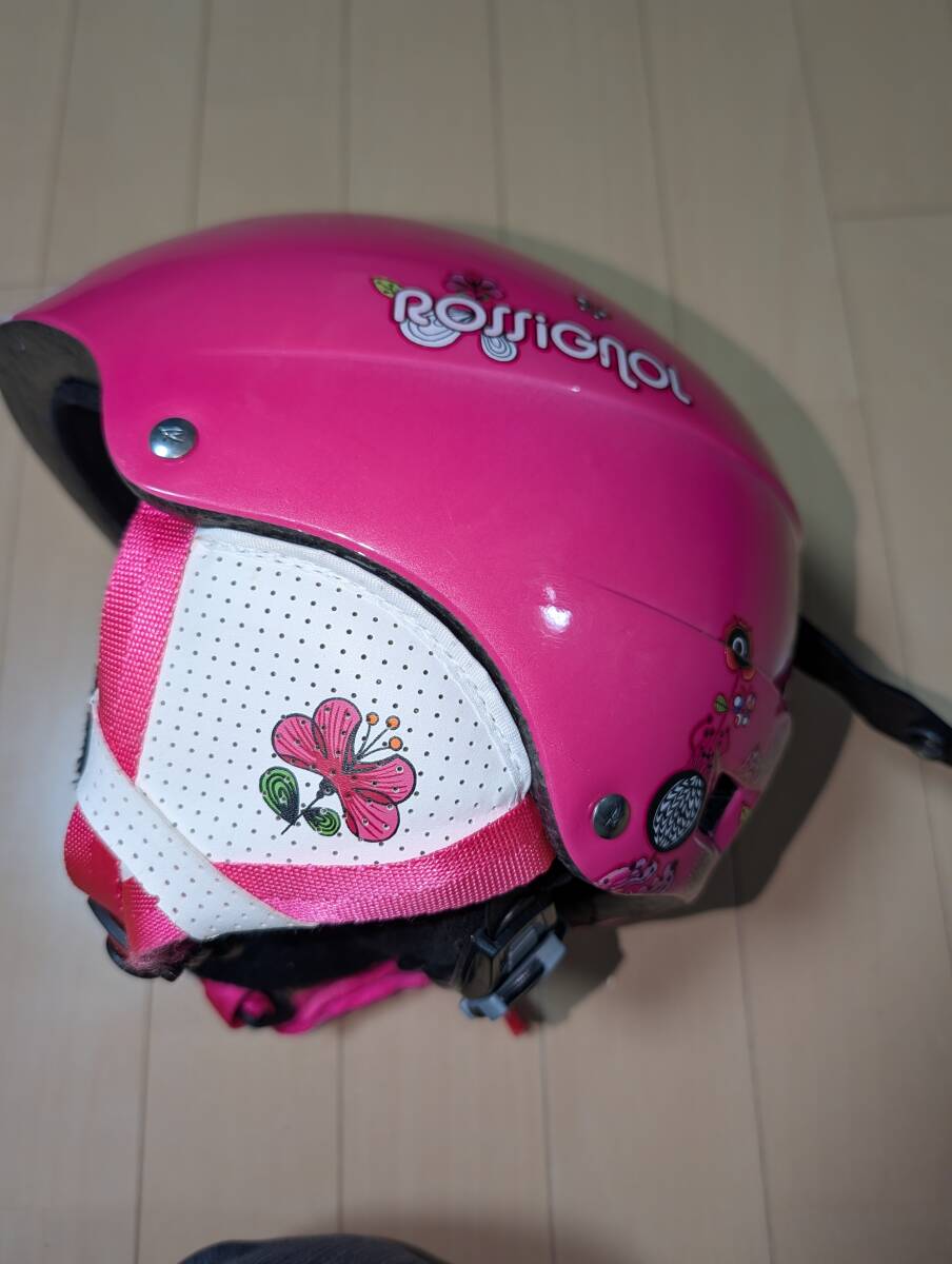 子供が小学生の頃に使用していました。サイズが56-58なのでレディースでも使用できると思います。花柄シールは新品時から貼られてたもので、メーカー製のデザインシールとなります。