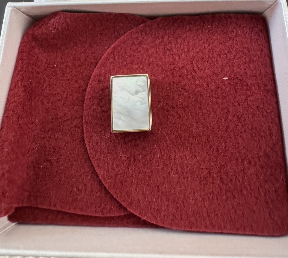 18金に天然ダイヤをクロスにデザインされ、逆面には光沢のあるシロチョウ貝の貝殻ををあしらったリバーシブルペンダントです。