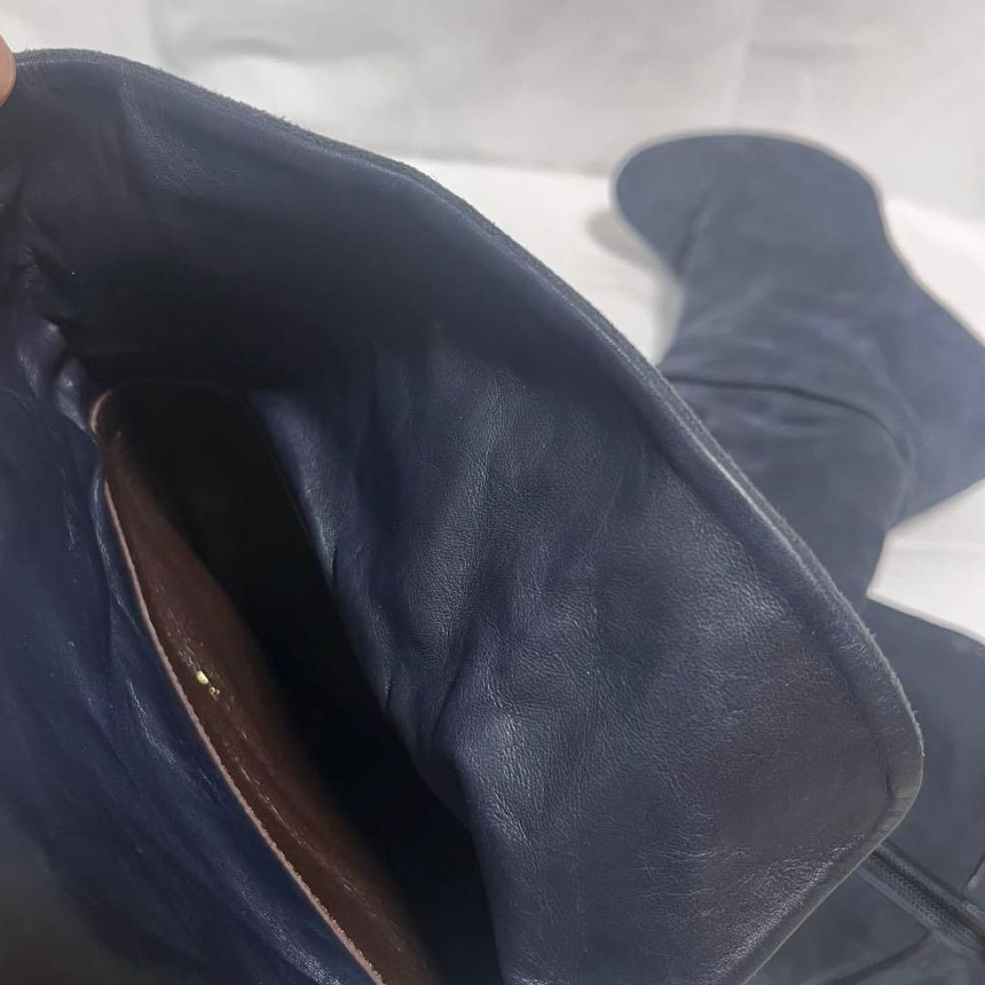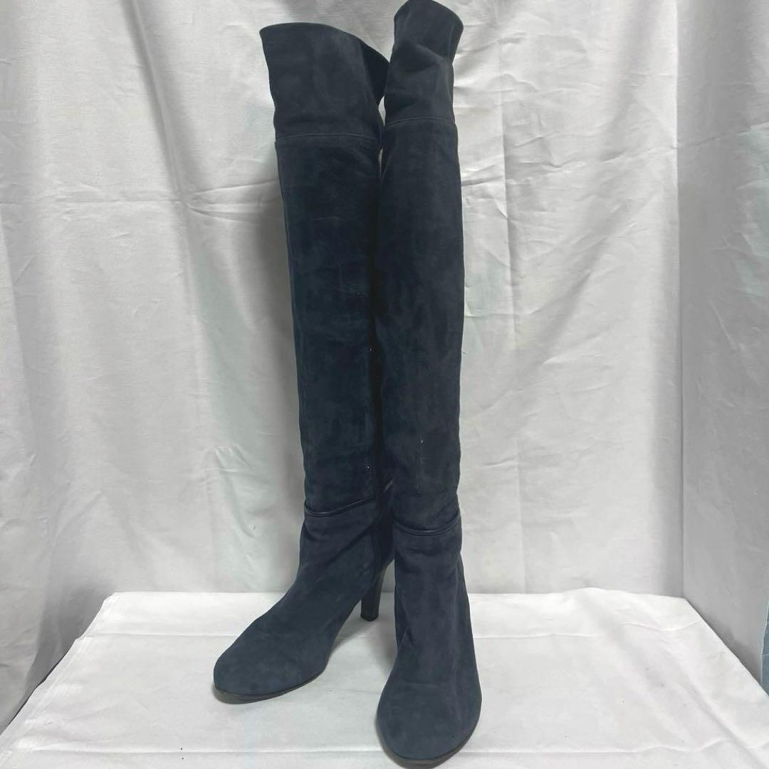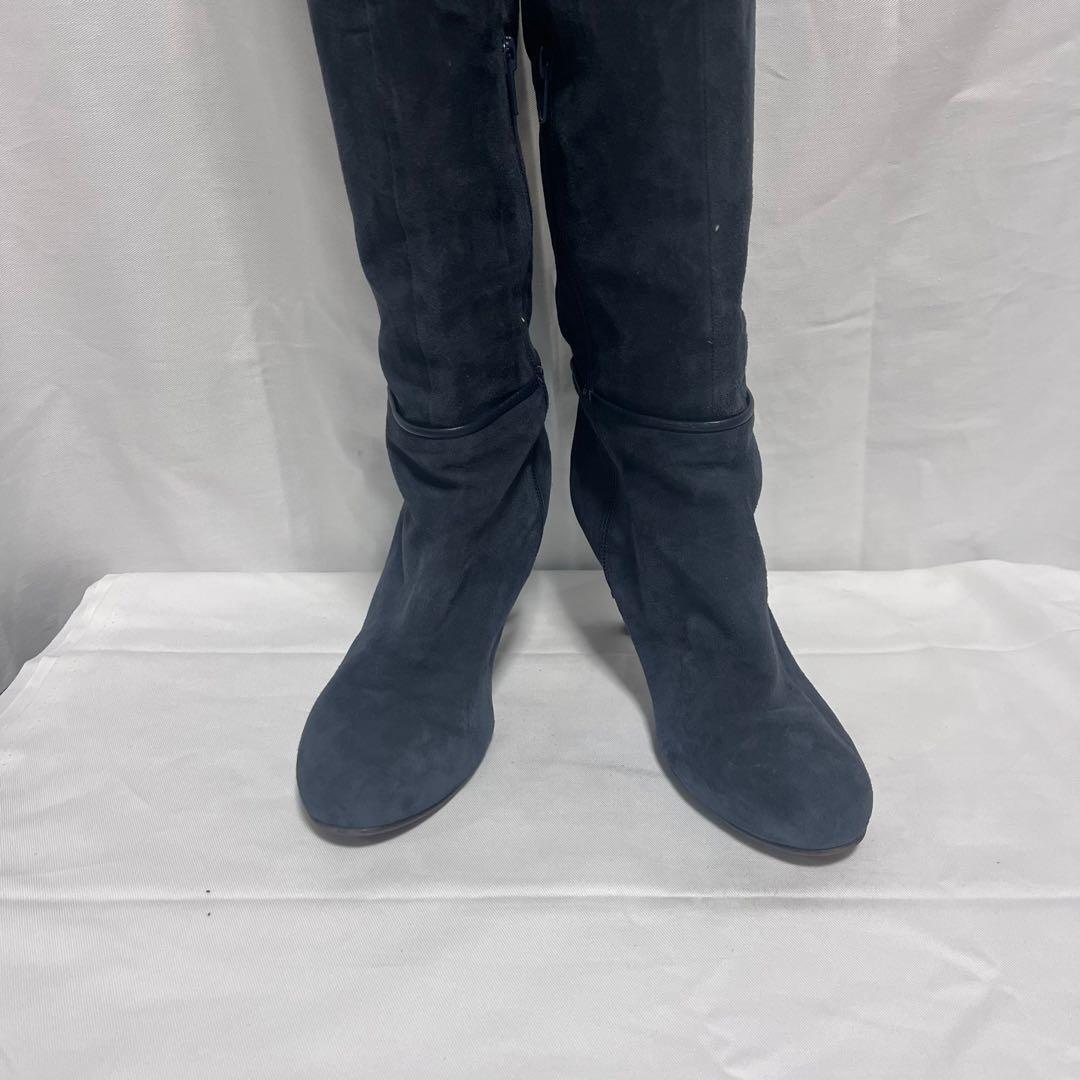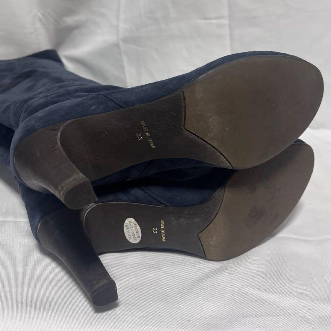 ロングブーツ スエード 23cm ネイビー 日本製 ブーツ ニーハイブーツ