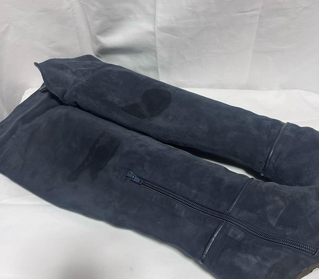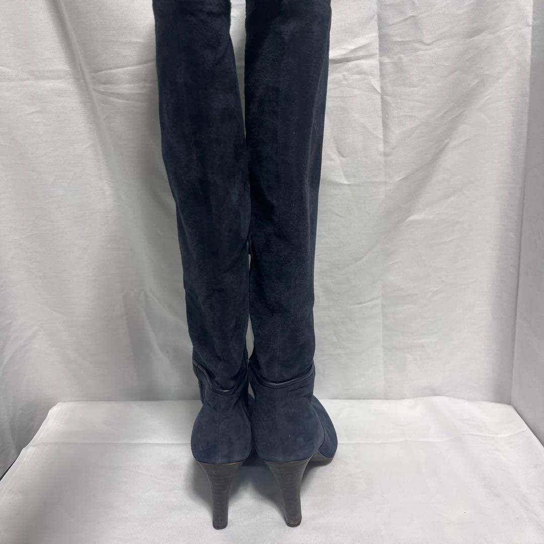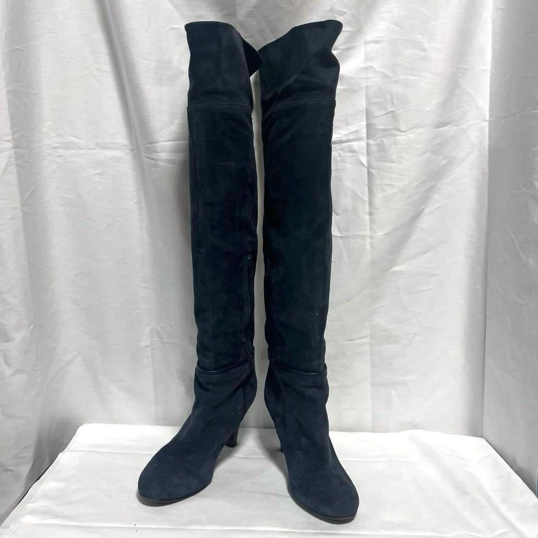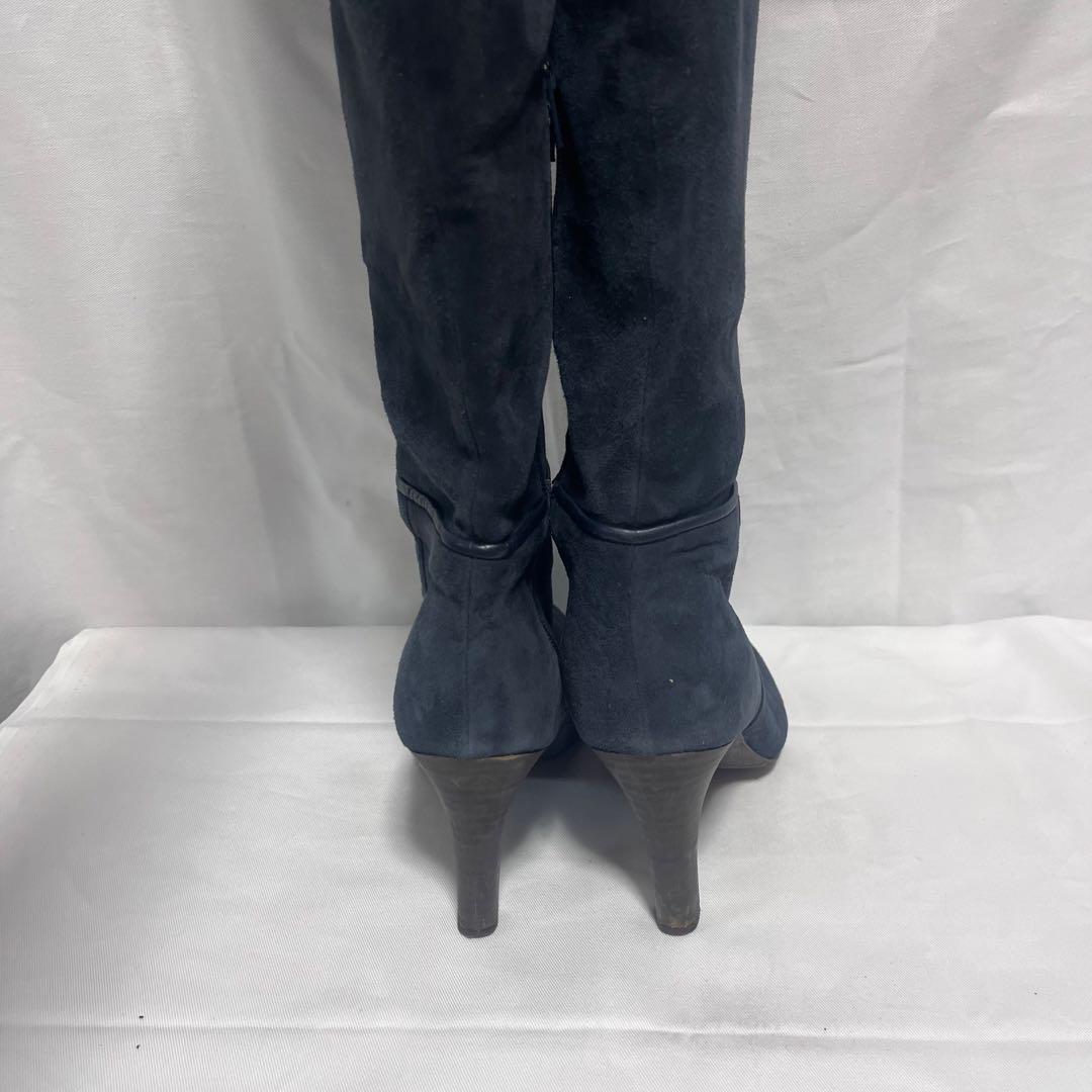 ロングブーツ スエード 23cm ネイビー 日本製 ブーツ ニーハイブーツ