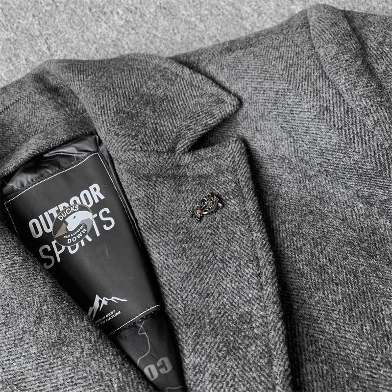 大きいサイズ 国内未販売 新品 メンズ ウール混 ダウンコート 厚手 極上の暖かさ ダウン90% 紳士 ミドルダウンチェスターコート 灰 D9979-3XL