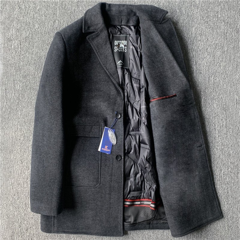 新品 DCKMANY ウール混 ダウンコート 厚手 防寒 ダウン90% 紳士 メンズ 冬服 極暖 ミドル ダウン チェスター コート 灰 D9978-3XL