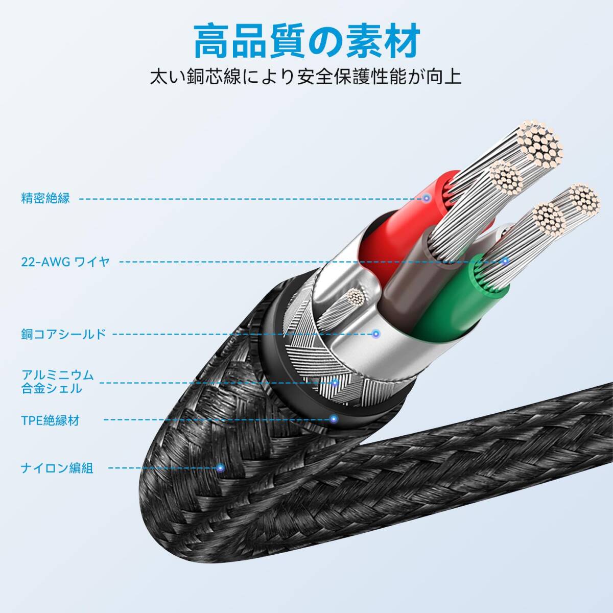 【高耐久ナイロン素材】4本セットのusb c ケーブルはTPE素材とナイロン編みを採用して、絡まりと引っかき傷や伸びを防ぎ、素早く熱を放散できます。ニッケルメッキのインターフェースは強力な干渉防止と酸化防止ができます。22AWGの太い銅線は優れた導電性を実現できます。耐用年数を延ばします。