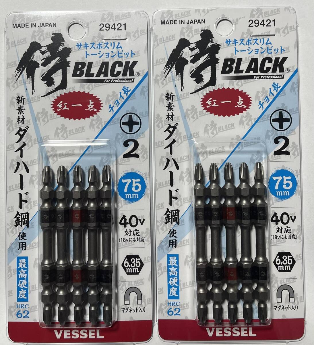10本 ベッセル 侍ブラック サキスボスリムトーションビット 75ミリ 5本×2 ダイハード鋼 マグネット入り 18V40Vインパクトドライバ対応