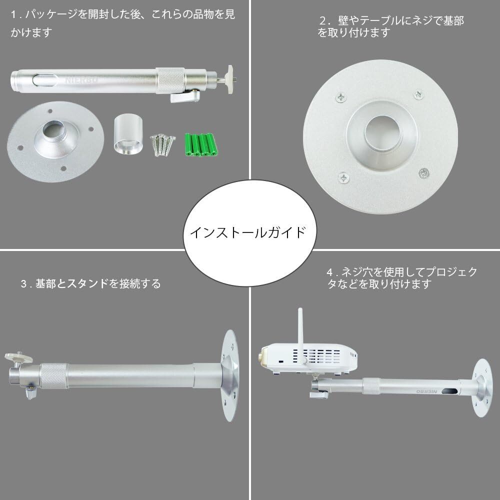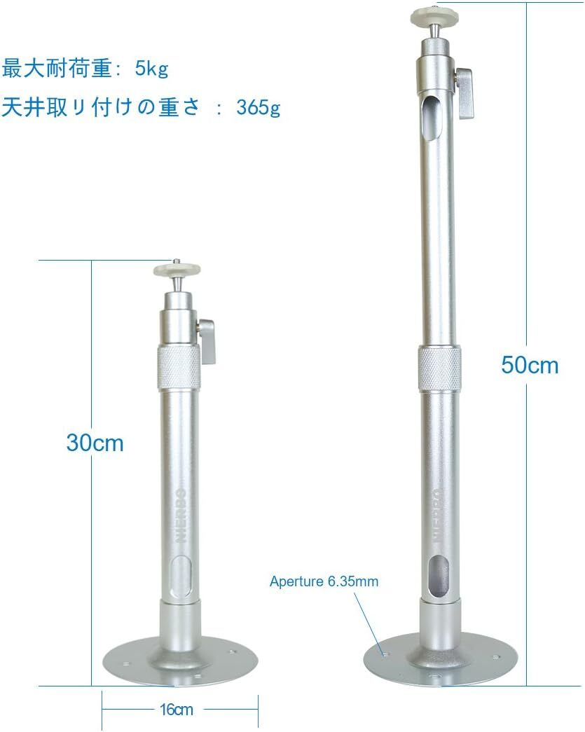 この製品の長さは30cmから50cmまで、自在に調整が可能です。基部の直径は160mmで、360度全方位に回転可能な設計となっております。これによりプロジェクターの投影角度を自由に調節して表示することができます。