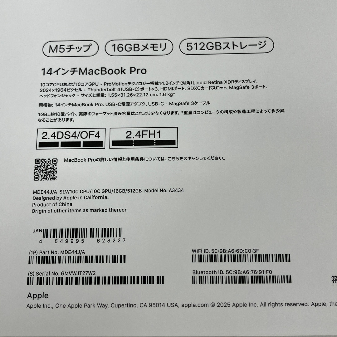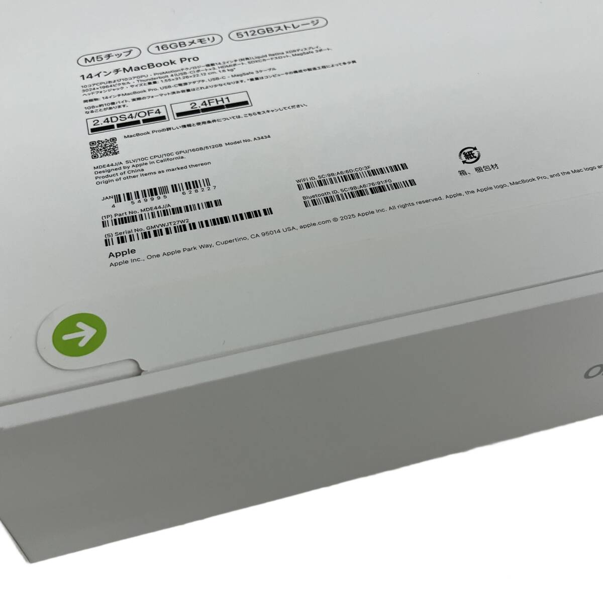 | Apple MacBook Pro 14インチ M5 16GB ストレージ512GB MDE44J/A 未使用 S10624450 |