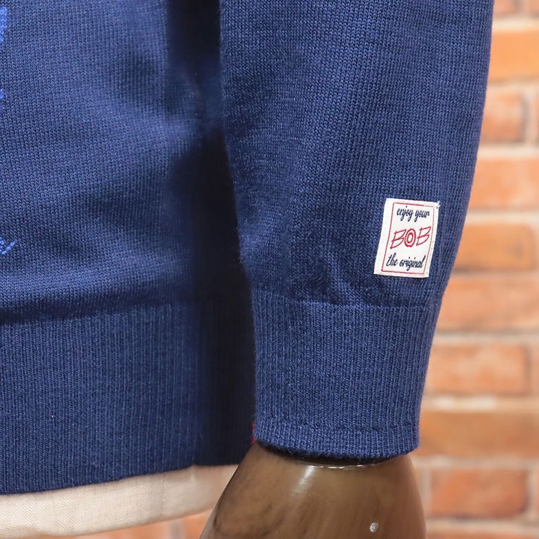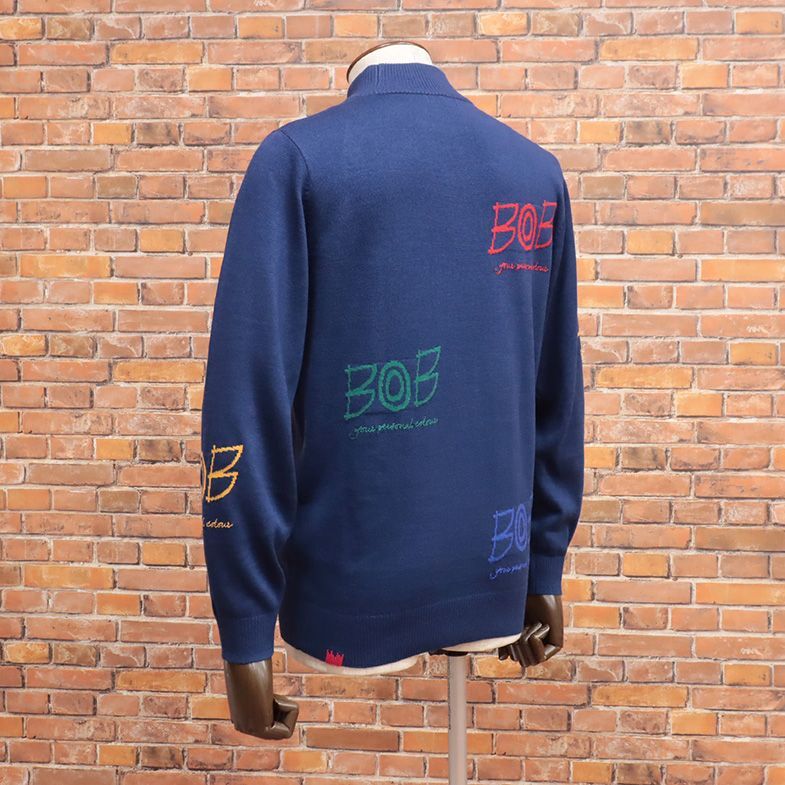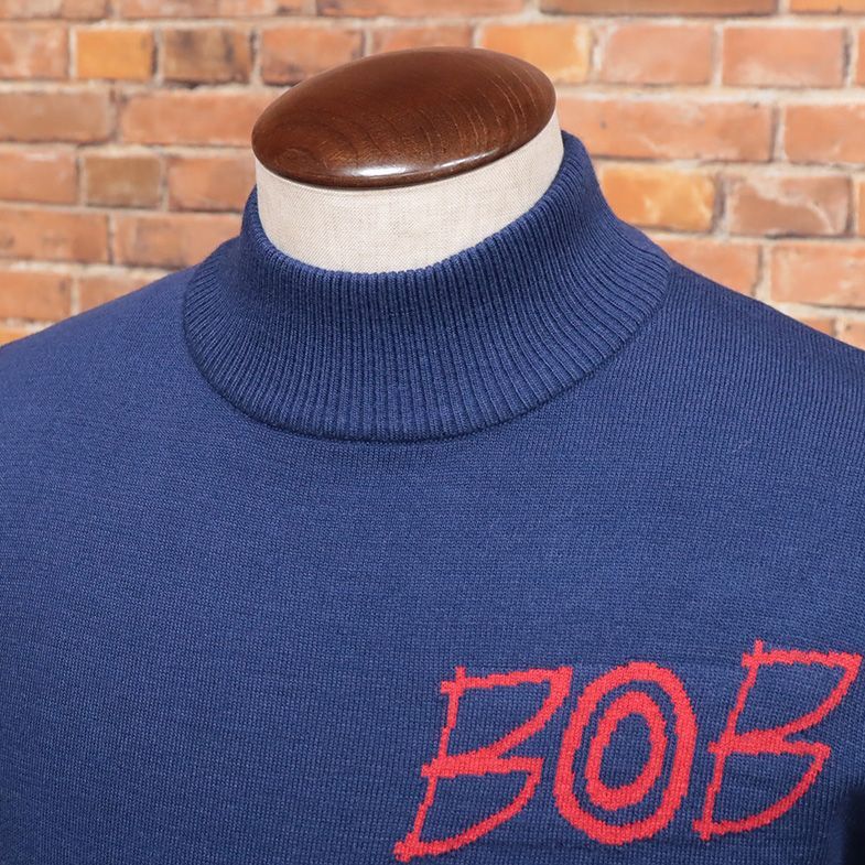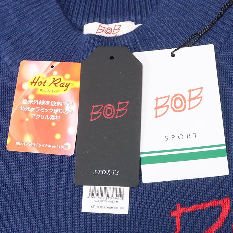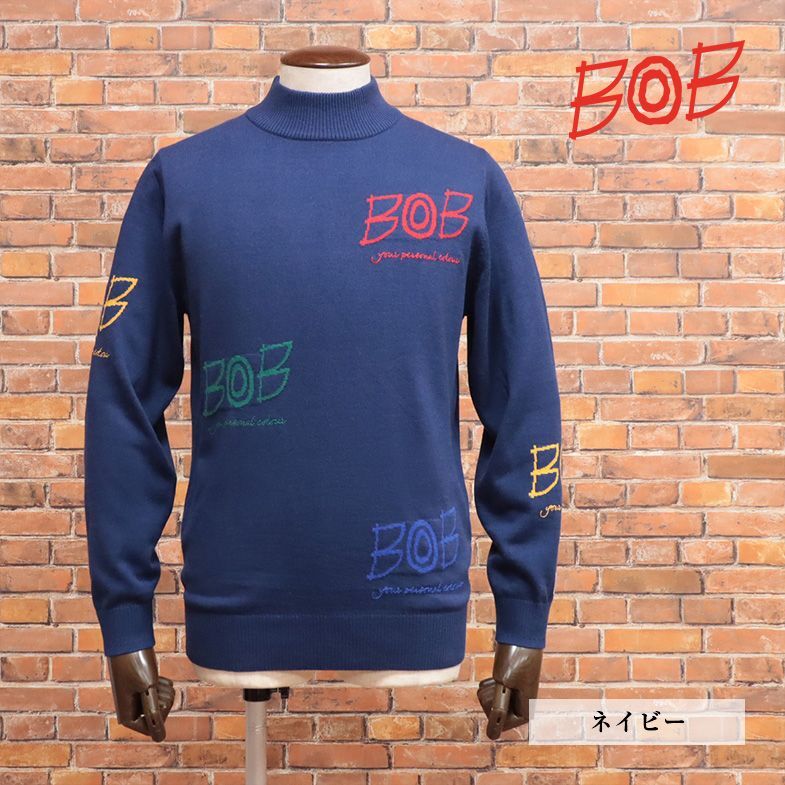 1円/23AW/BOB/Mサイズ/モックネック ニット 保温◎ ホットレイ 機能性 ロゴ ジャガード 遊び心 ゴルフ 新品/紺/ネイビー/jb322/