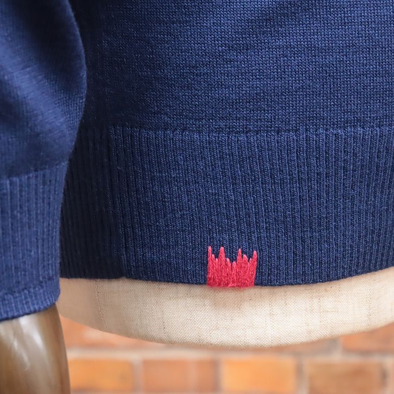 遠赤外線を放射する特殊セラミックを繊維中に練り込むことで保温効果を高めた機能素材ホットレイを使用したセーター。ジャガード編みによるカラフルなロゴがデザインされた遊び心あふれる一枚。カジュアルにはもちろん、ゴルフシーンにも大活躍のアイテムです。
