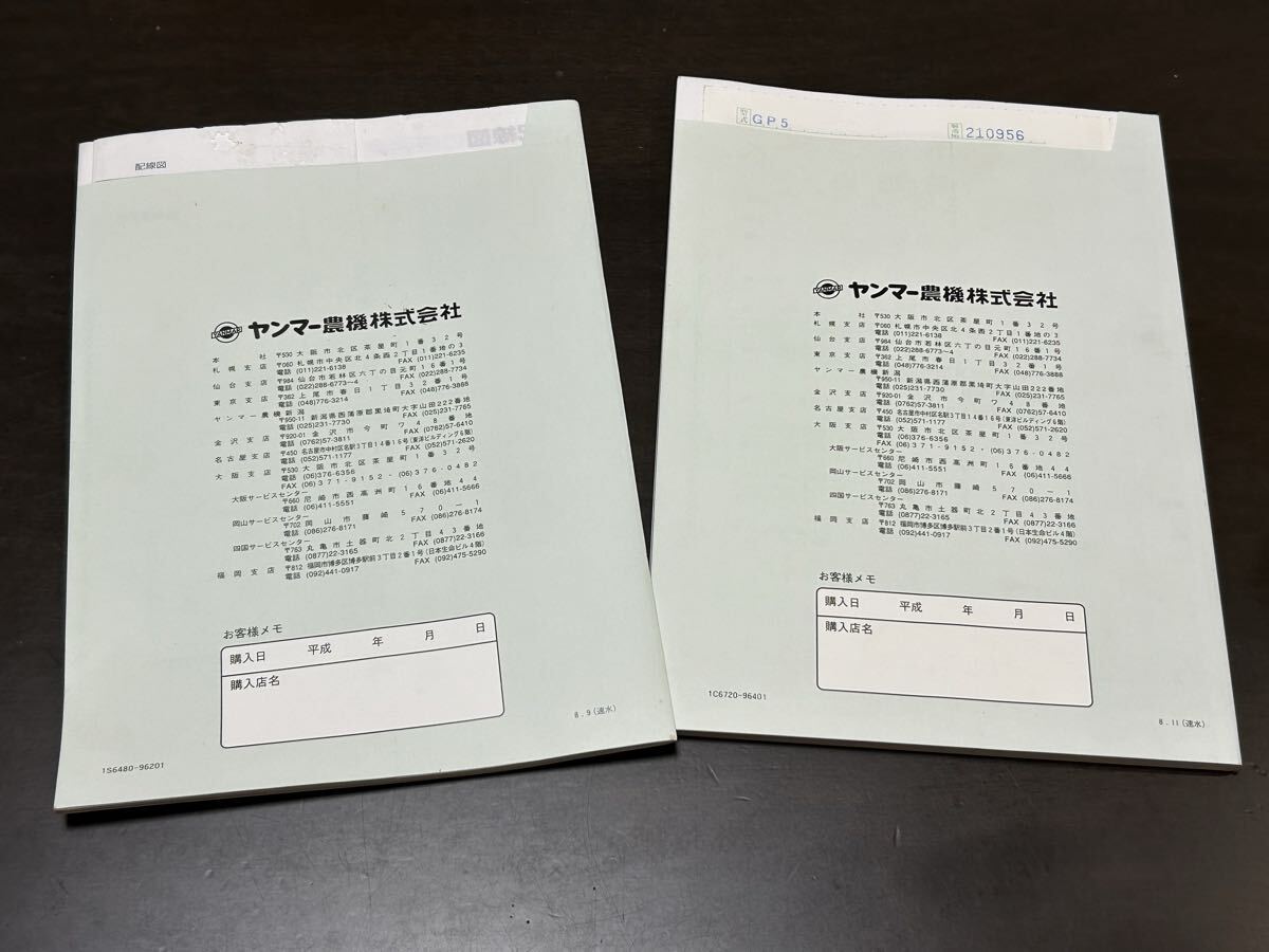 取扱説明書 2冊 ヤンマー 乗用田植機 高速ニュー すこやか GP5/GP6 ヤンマー 側条施肥機 FGP5/FGP6(GP5/GP6用)