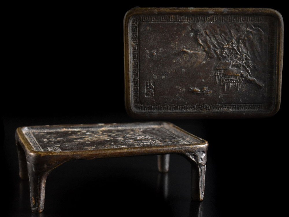 | 商品名 | 【雲】某名家収蔵品 本間琢斎 鋳銅 斑紫銅製 楼閣山水 墨台 墨床 古美術品(書道具 文房具 置物)Y7466 CTApoi |