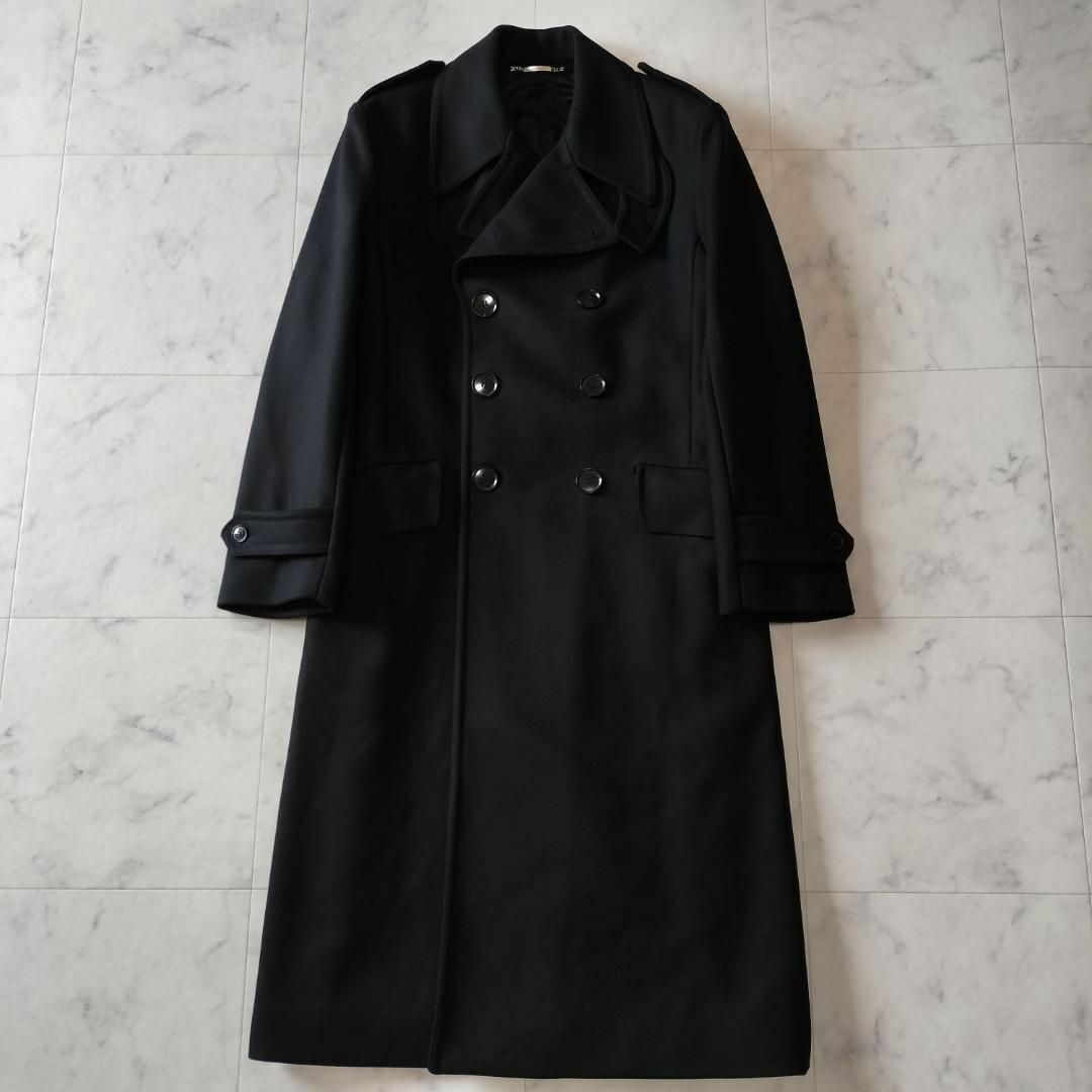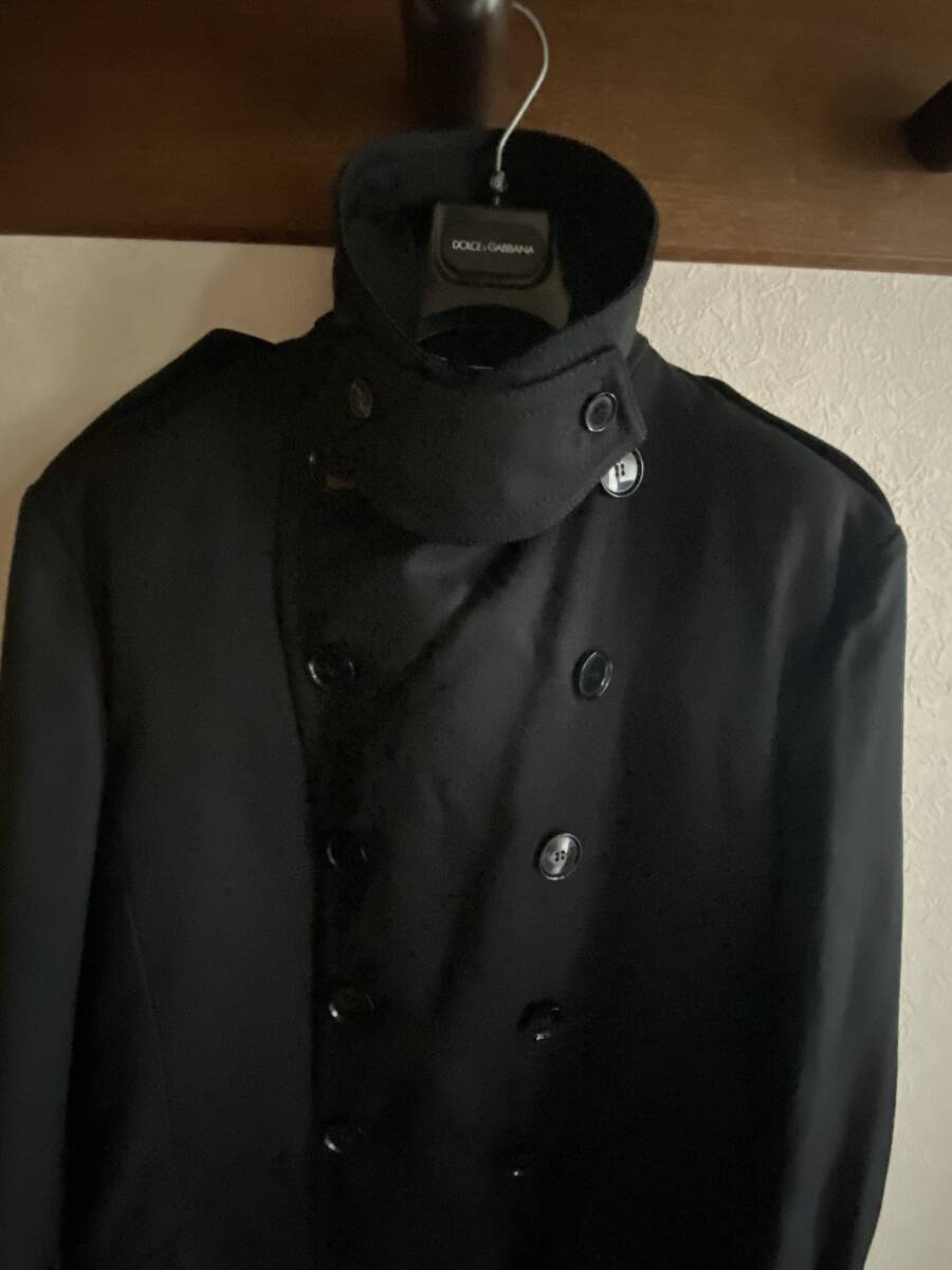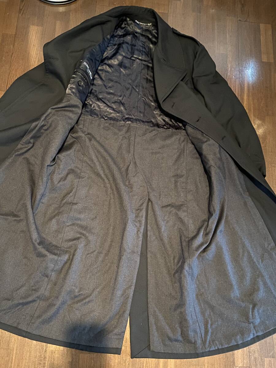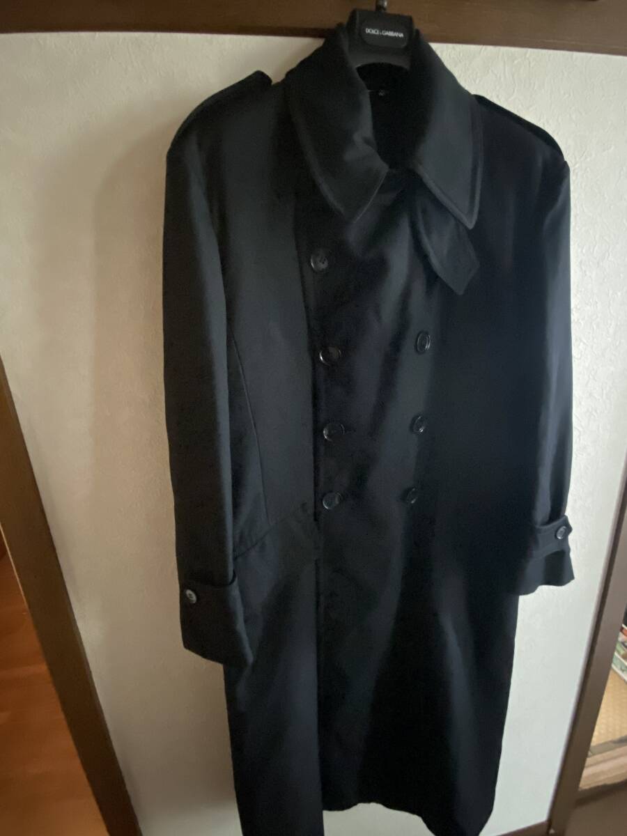 「DOLCE&GABBANA(ドルチェ&ガッバーナ)」の上質なシルク混ダブルブレステッドロングコートです。深みのあるブラックカラーが印象的な、イタリア製の高級感あふれる一着です。