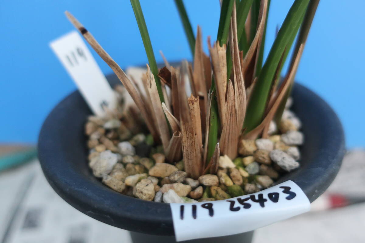 寒蘭-25403-5H3 119 日向の誉×月心 開花 難あり 交配種 (春蘭・寒蘭・風蘭・石斛)シラタキ園 &