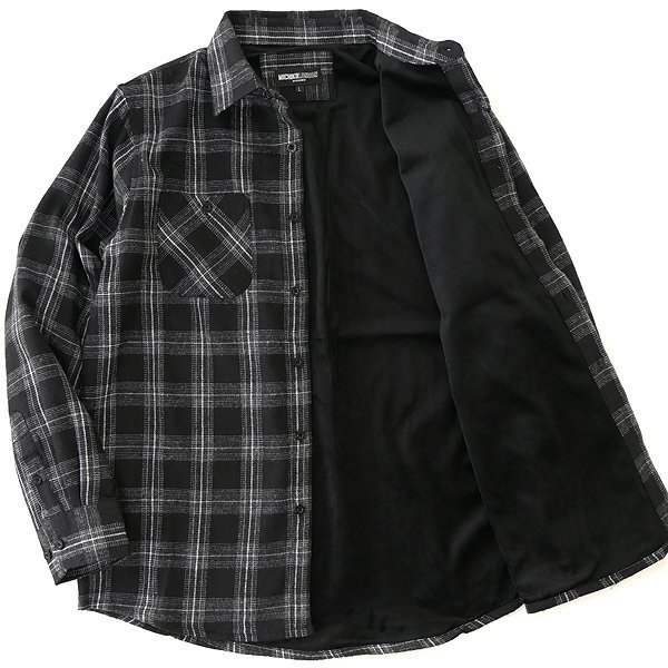 表地にはチェック柄を表現した秋冬らしいフランネル素材、裏地には暖かくて肌心地もよいベロア素材を使用したシャツブルゾンです。 表裏ともに滑らかな起毛感で、防寒性、保温性に優れ、一枚あると様々なシーンで活躍します。 カジュアルはもちろん、トレンドのキャンプ、アウトドアテイストにも取り入れていただけます。 デザインはシンプルベーシックで飽きの来ない定番的なスタイルになっています。 【デザイン】 ・総裏仕立て(身頃裏にベロア、袖裏にタフタ使用) ・袖先は本開き |