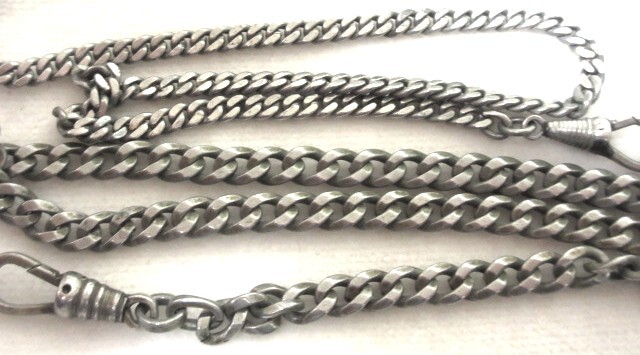 サンプラチナ製提げ鎖 / フォブチェーン / 喜平型 / 2本セット ◆ 懐中時計 / 紳士小物 / アクセサリー小物 / 装飾品 ◆ 経年品 / 当時物