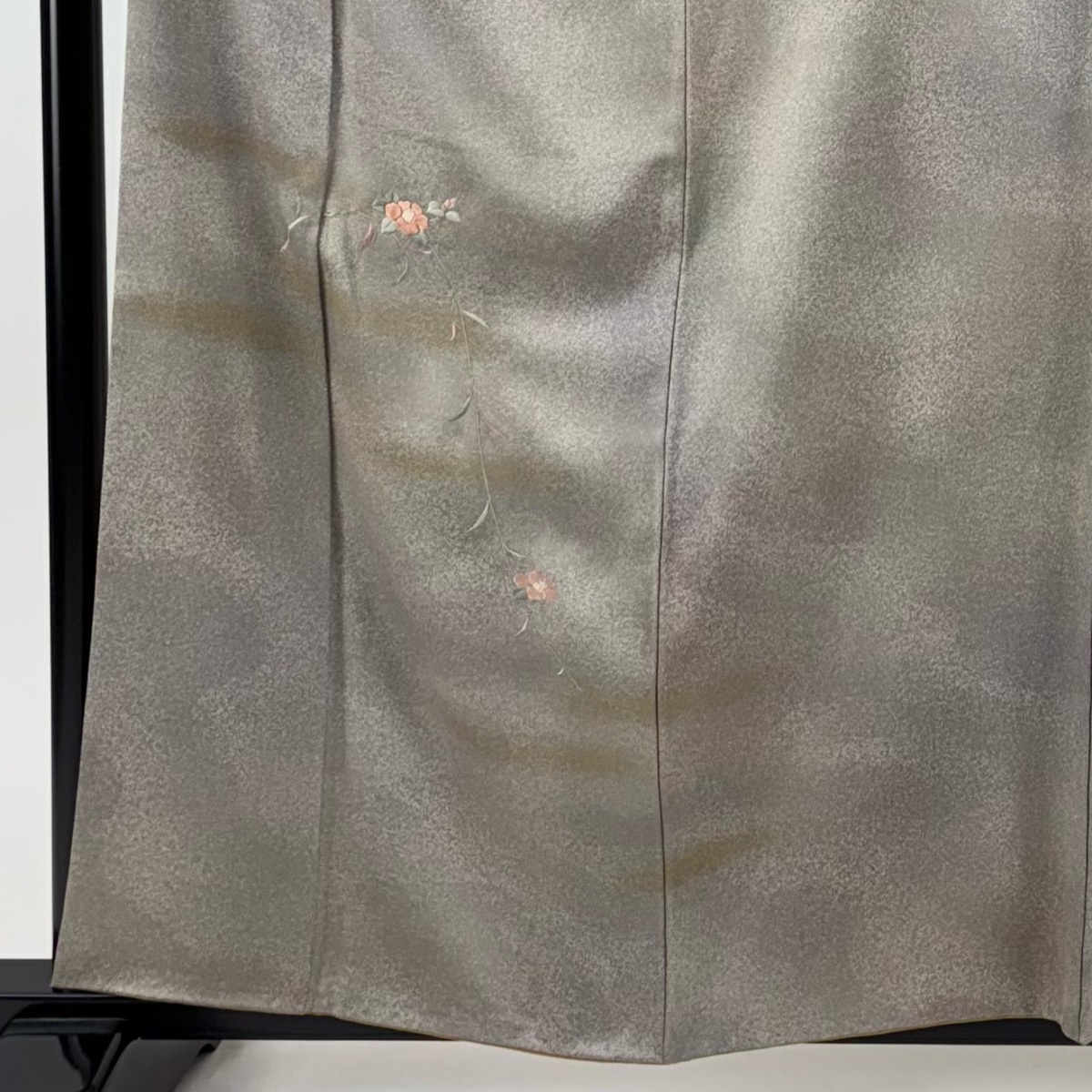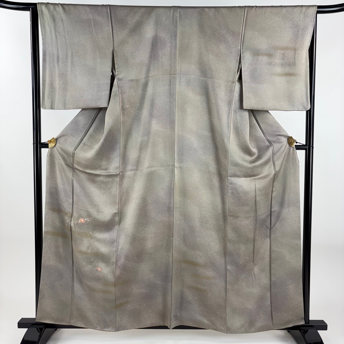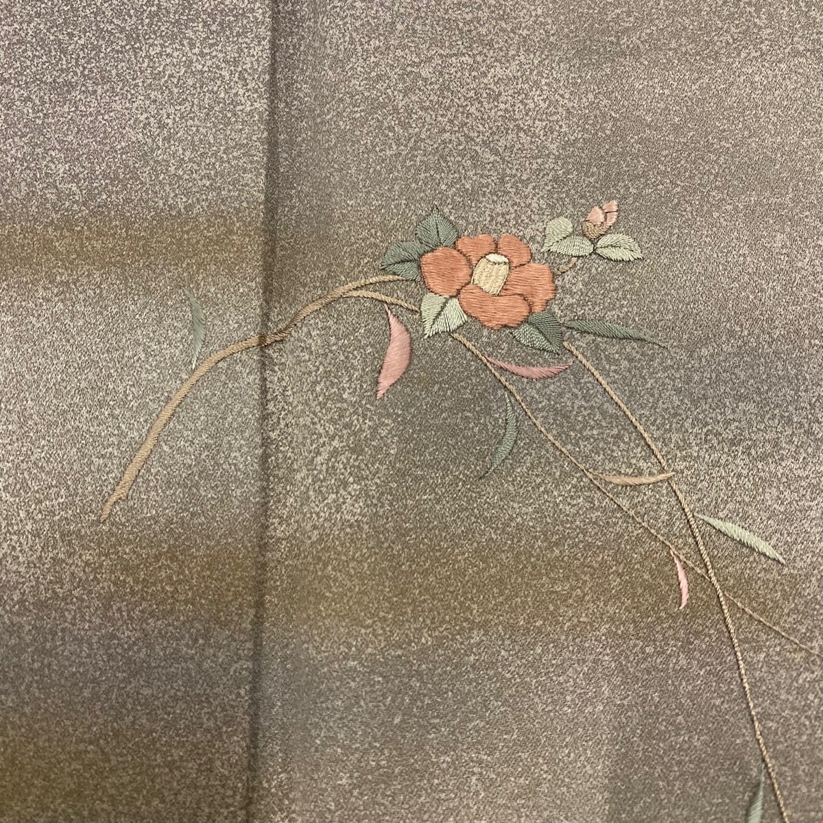 | 付下げ 秀品 椿 霞 刺繍 金糸 灰茶 袷 身丈158.5 裄丈65 M 正絹 【中古】 |