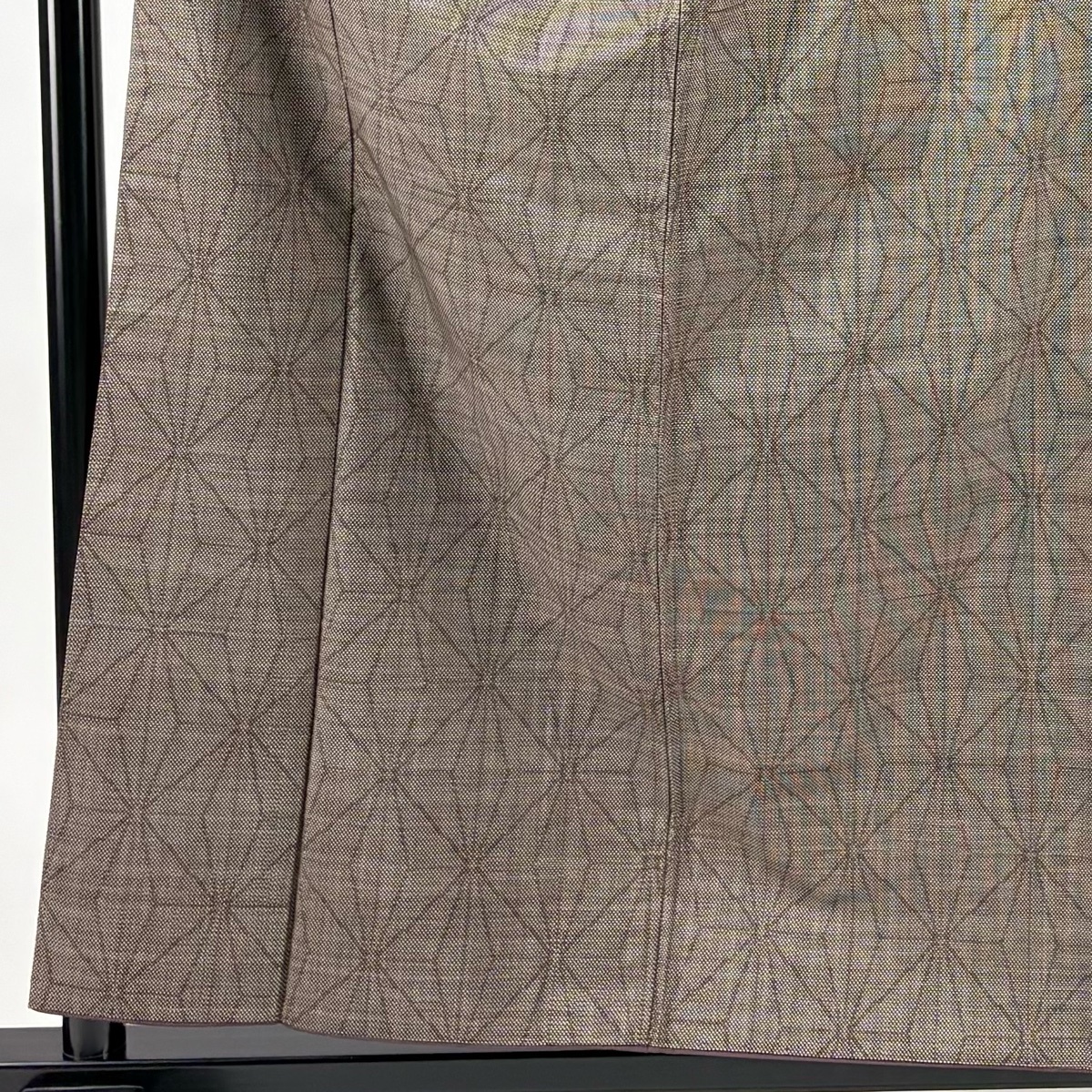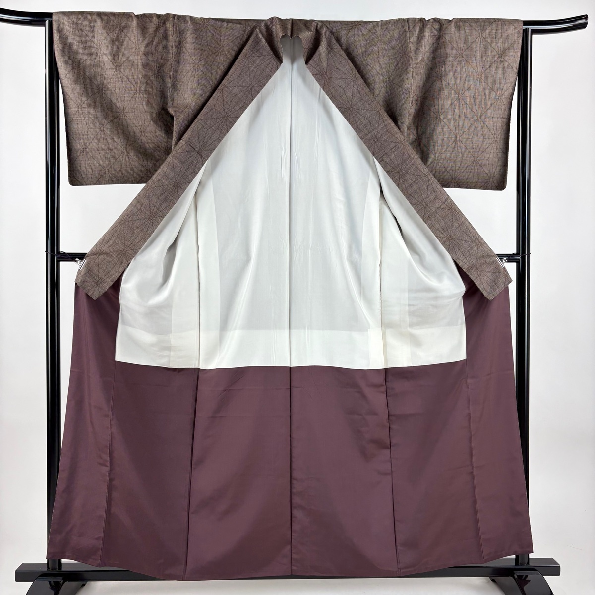 | 紬 秀品 麻の葉 幾何学 茶色 袷 身丈159 裄丈64.5 M 正絹 【中古】 |