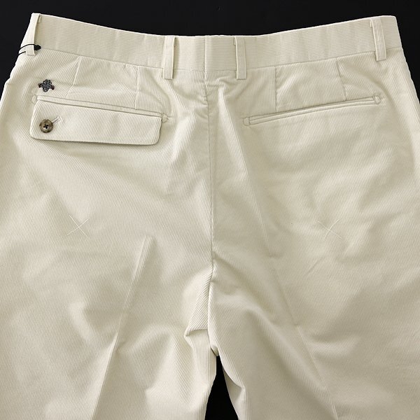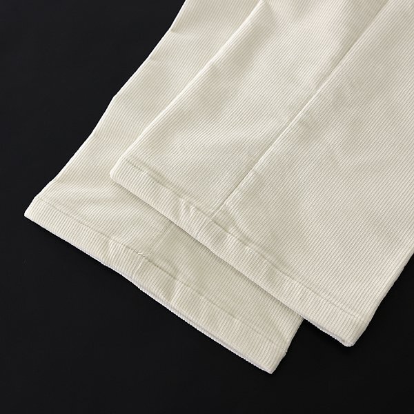 48サイズ(Lサイズ相当) ウエスト87 ※商品に記載されたサイズ・寸法です※ ウエスト実寸87cm(内回り1周) 股上25.5cm 股下78cm 裾幅18.5cm 腿幅32cm(股下10cm部分) 表地:綿72% ポリエステル27% ポリウレタン1% 裏地:ポリエステル100% オフホワイト |