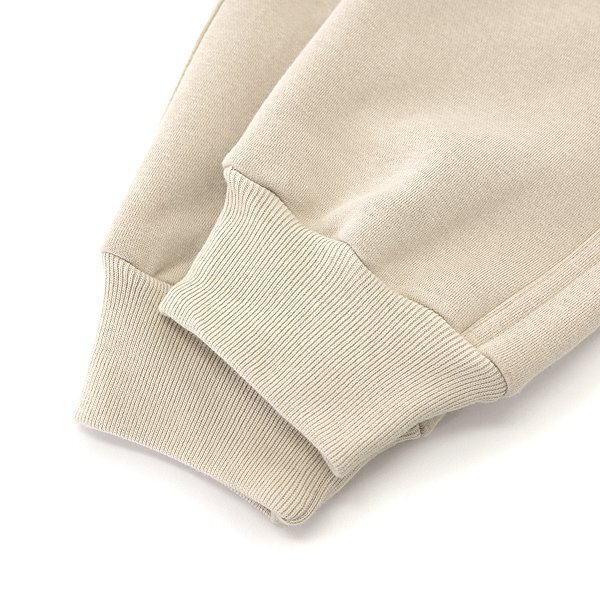 | 新品 未使用 紙タグあり Lサイズ(画像は別サイズで撮影) ウエスト84~94 ※商品に記載されたサイズ・寸法です※ ウエスト84~94cm(内回り1周・ゴム入り) 股上31.5cm 股下74cm 裾幅11cm(リブ使用) 腿幅31cm(股下10cm部分) ※伸縮性が高い素材のため多少誤差が生じることがあります※ 本体:綿52% ポリエステル48% リブ:綿100% 別布:ポリエステル100% ベージュ |