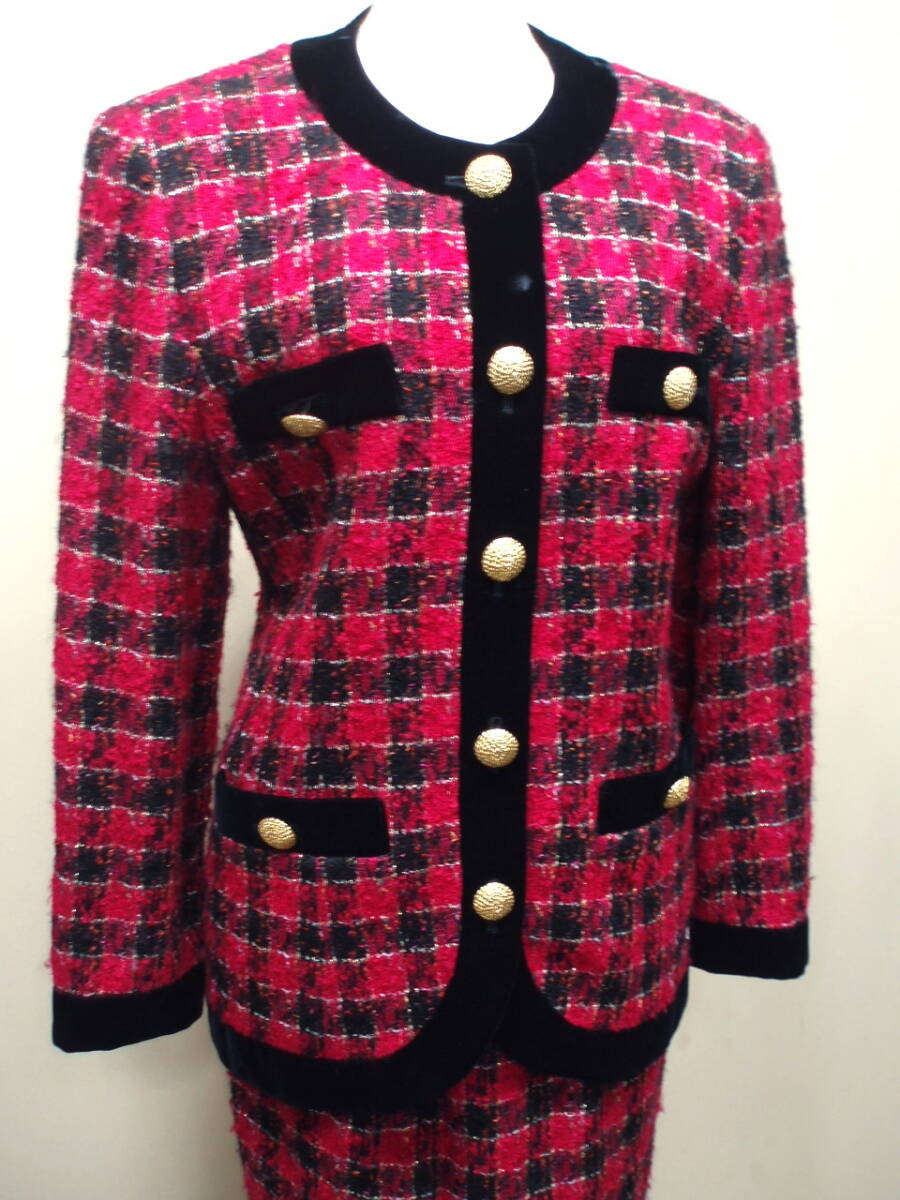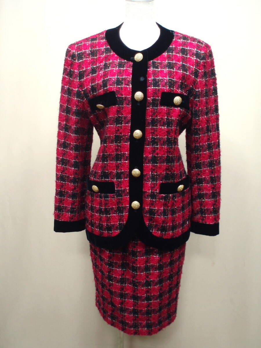 "" "L57806【ブルーベル】お嬢様系 モード ツイードスーツ 70~80’s 肩パット バブリー スーツ " |
