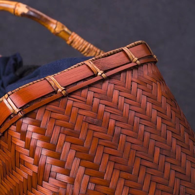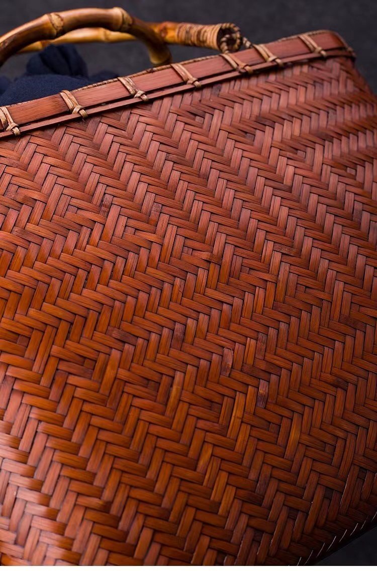 新品 ★自然竹編み上げ カゴバック  手作りバスケット お洒落買い物カゴ 収納バッグ