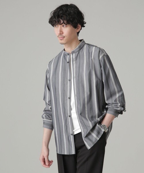 参考商品名:LB.04/TRランダムストライプバンドカラーシャツ