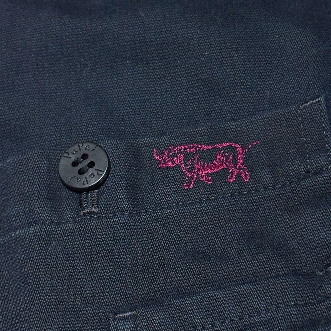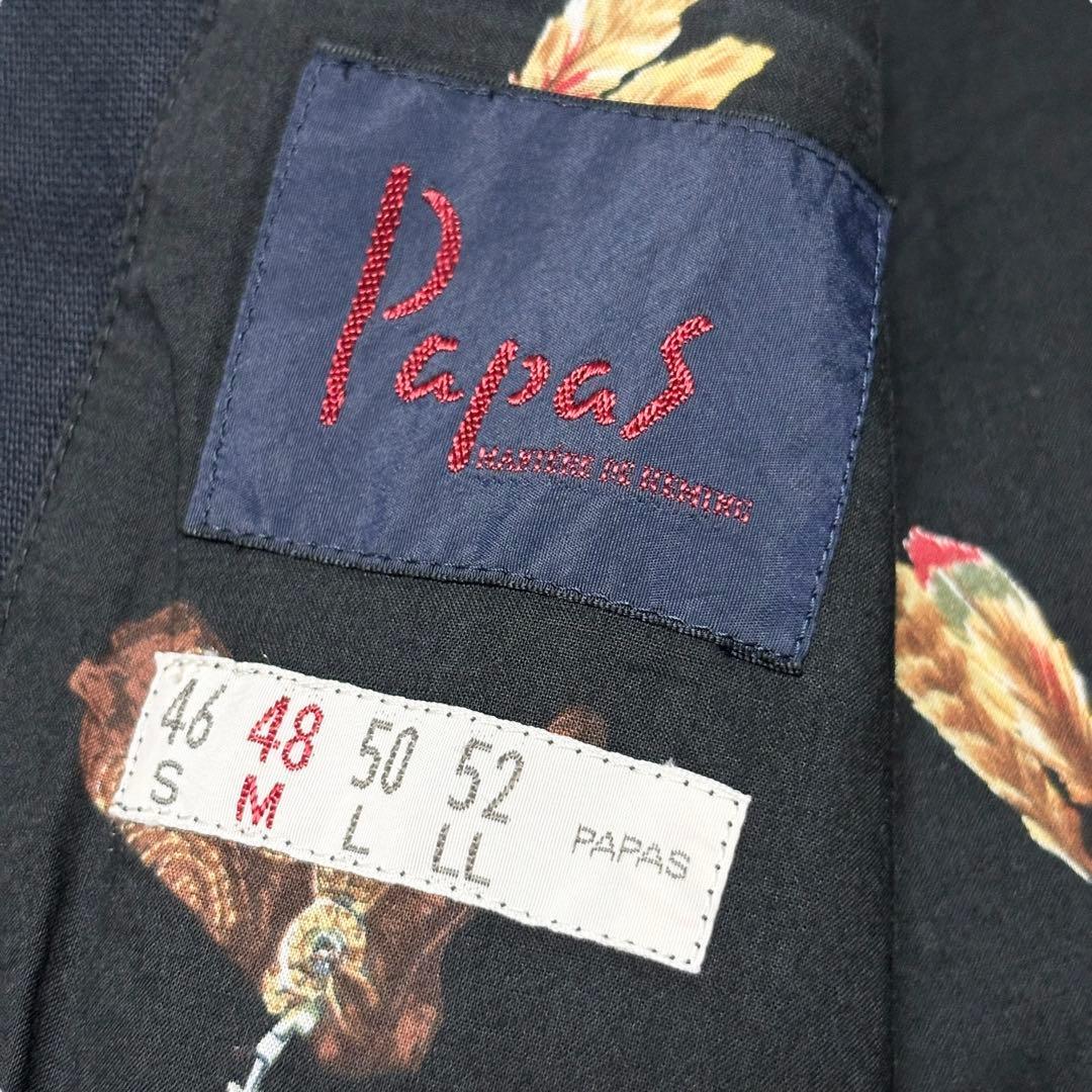 特徴:サイ刺繍 P刺繍 裏地総柄 ロゴパッチ ロゴボタン パパスらしさが詰まった一着です。