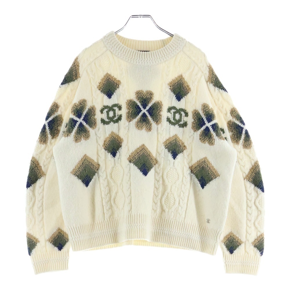 CHANEL シャネル ココネージュコレクション 総柄長袖ケーブルニットセーター アイボリー