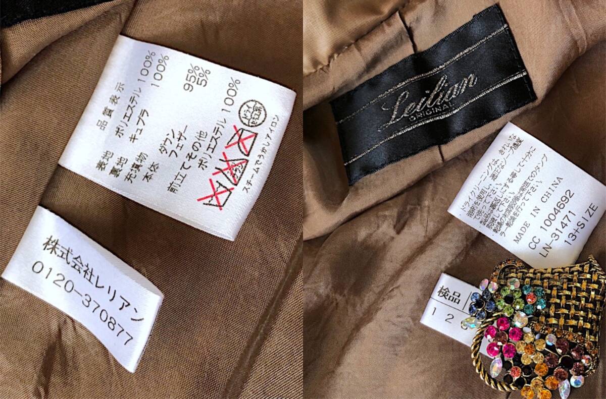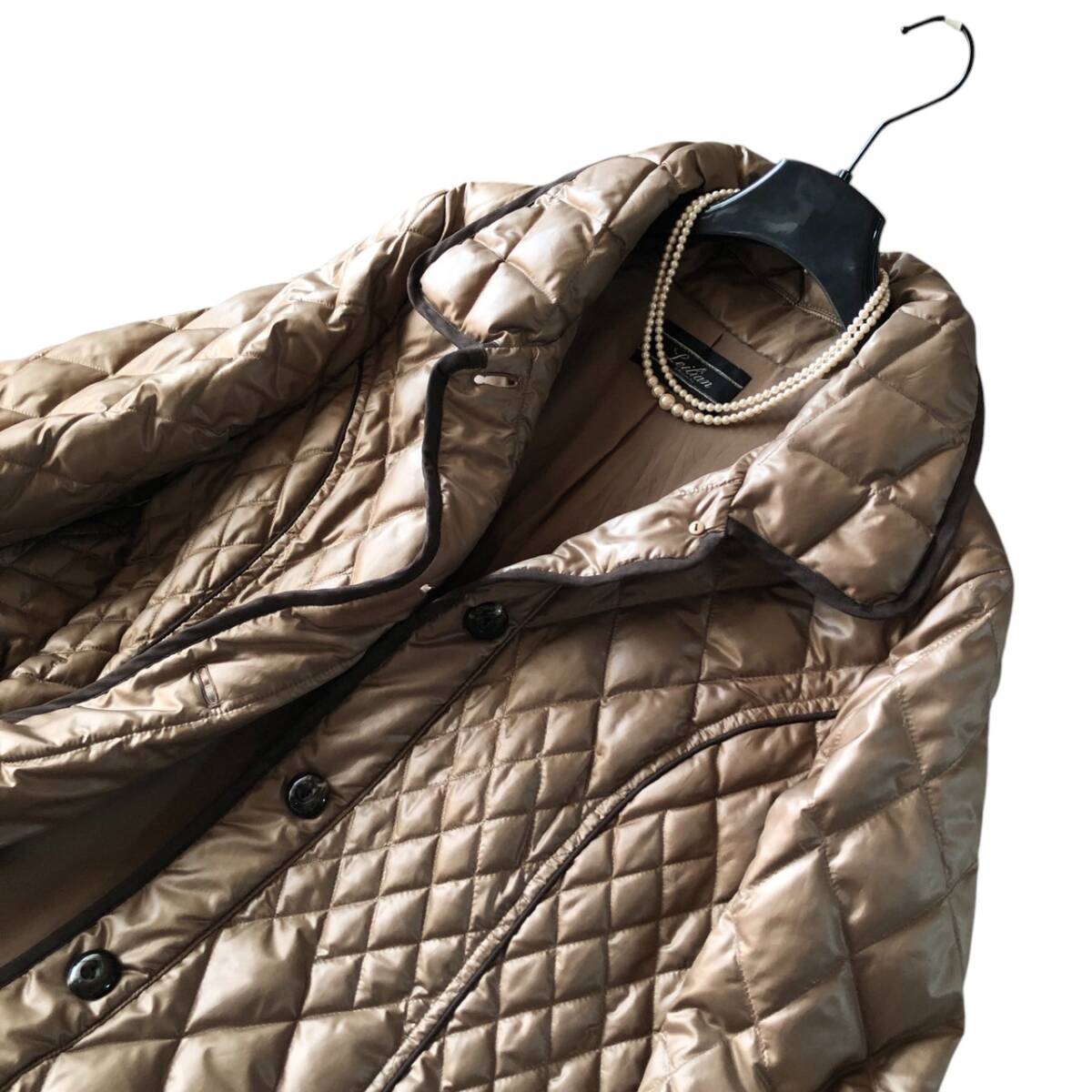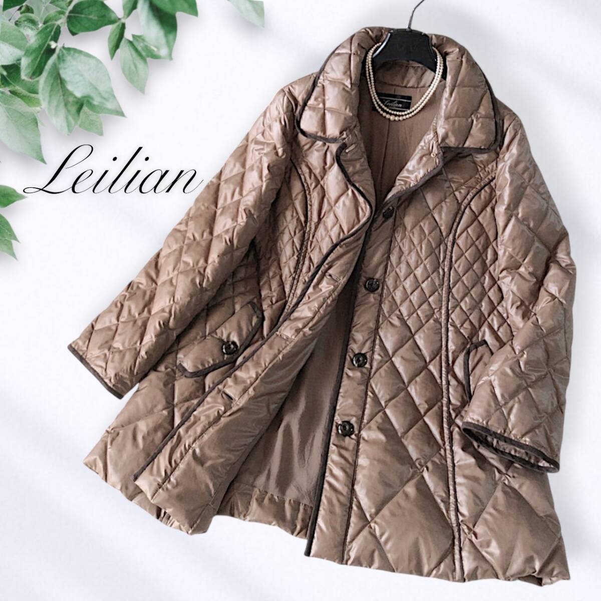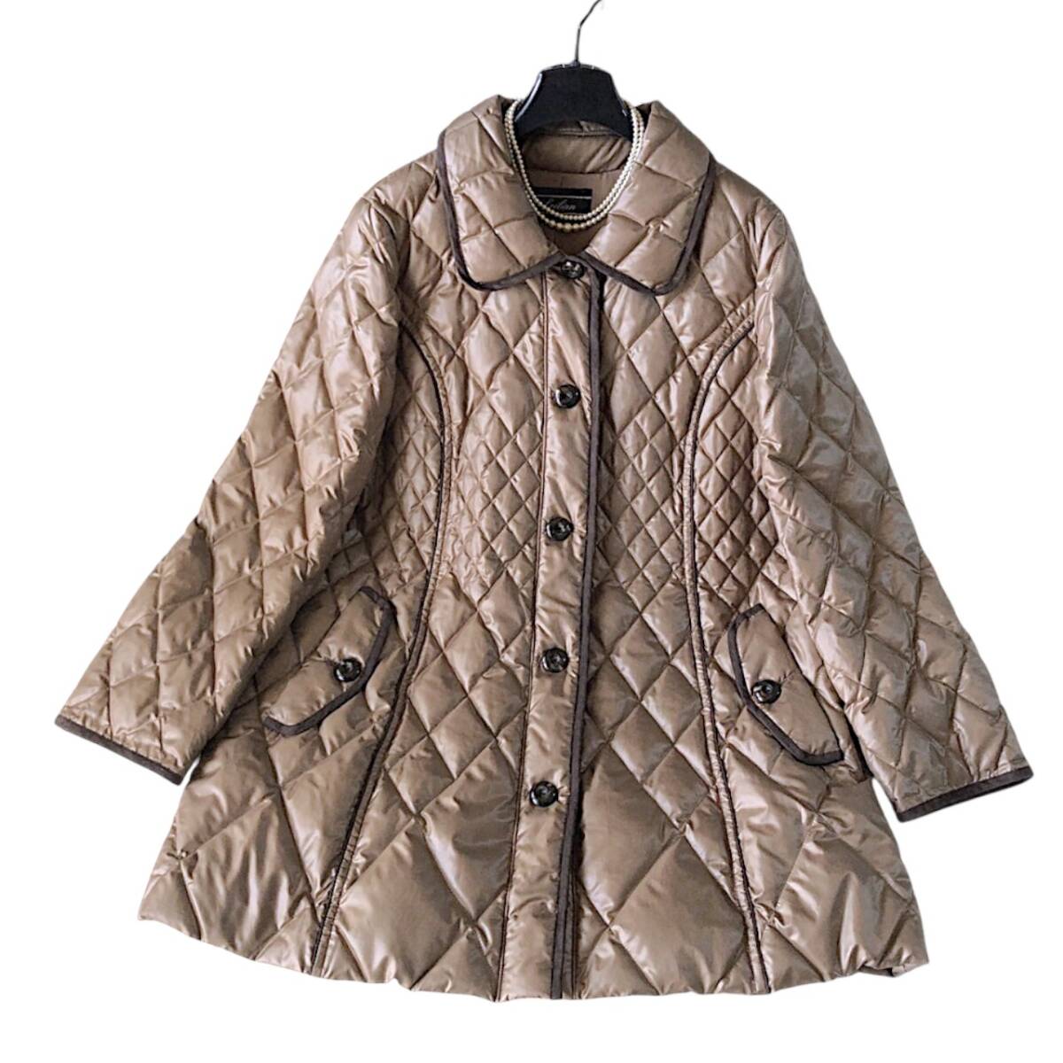 D20◆美品 レリアン Leilian プラスハウス 大きいサイズ 13+ XL LL 2L 前後 キルト キルティング ダウン フェザー コート ジャケット 防寒