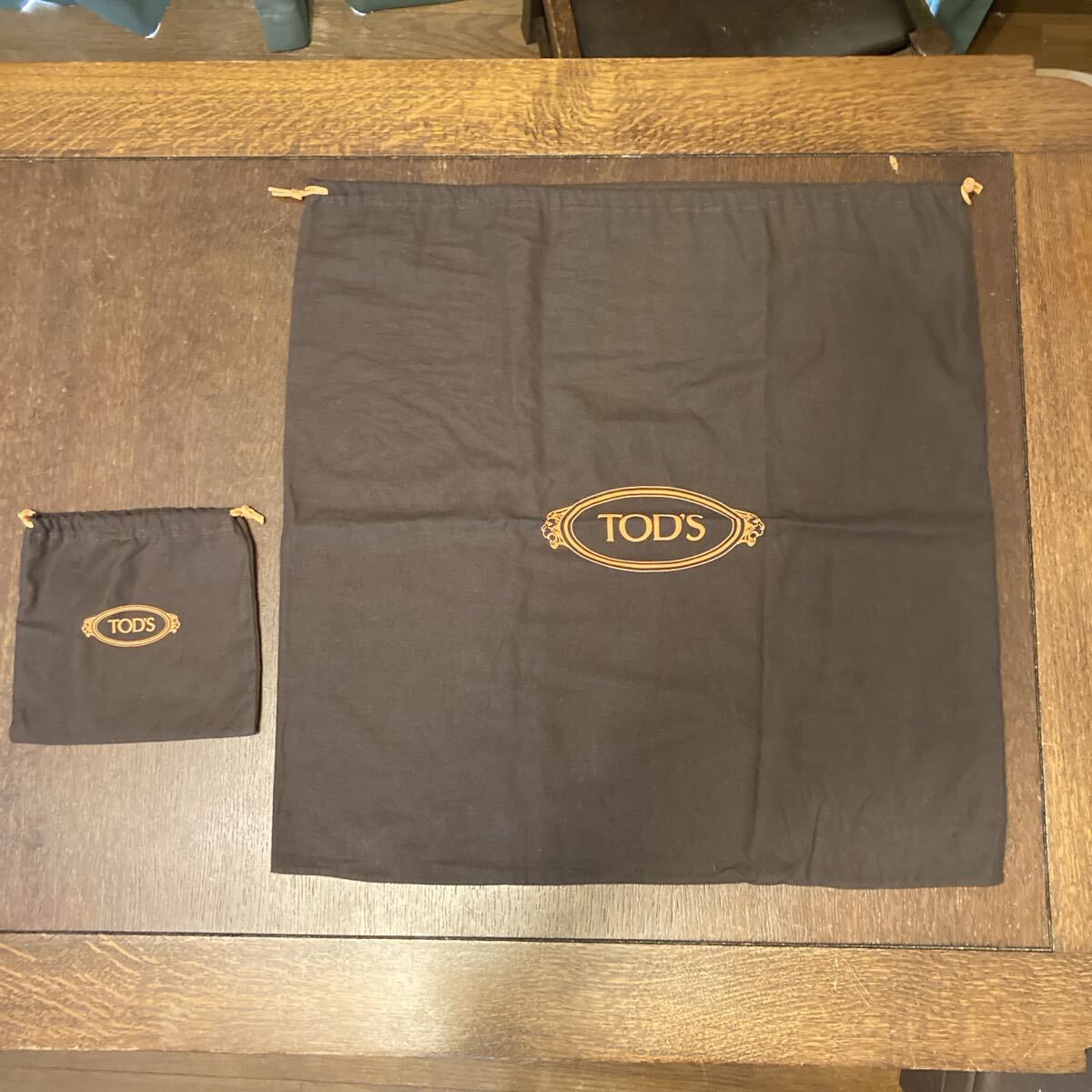 TOD'S ブラウン オレンジ ロゴ 紐 布製 巾着袋 収納袋 大 小