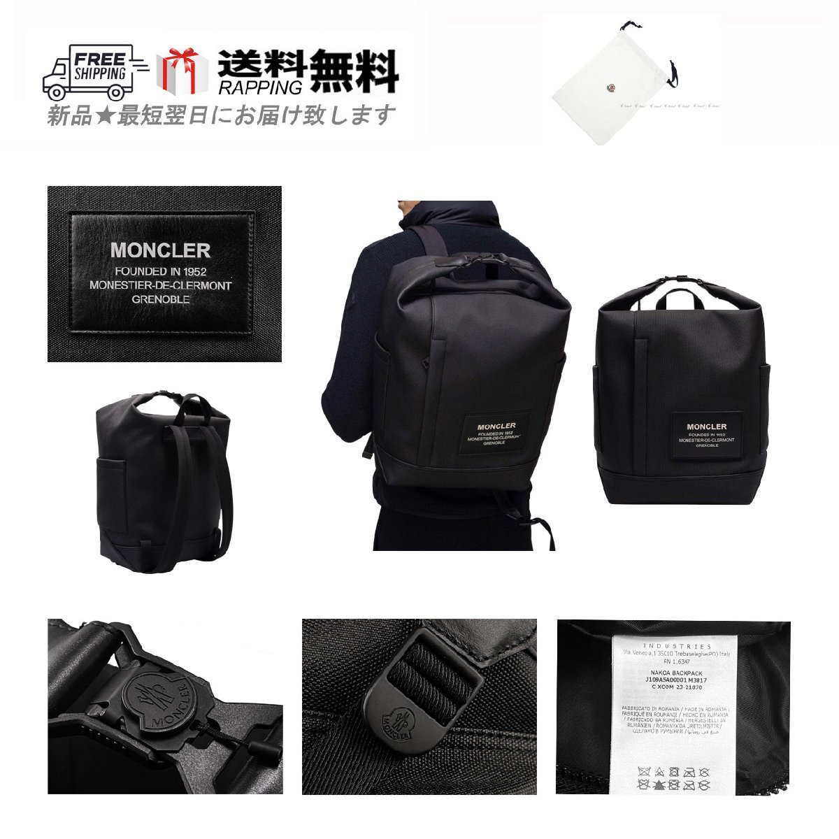 L670.. MONCLER モンクレール BAG リュックサック NAKOA BACKPACK バックパック メンズ ロゴ ★ 999 ブラック