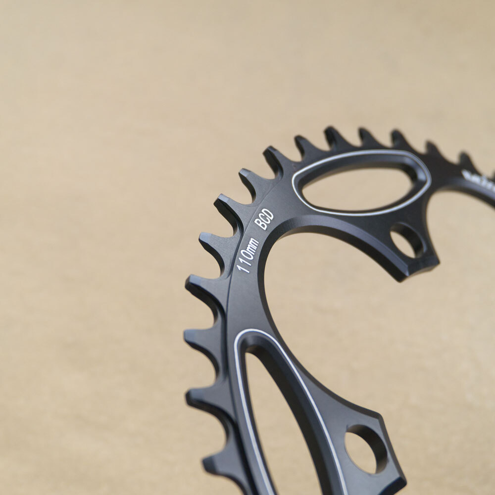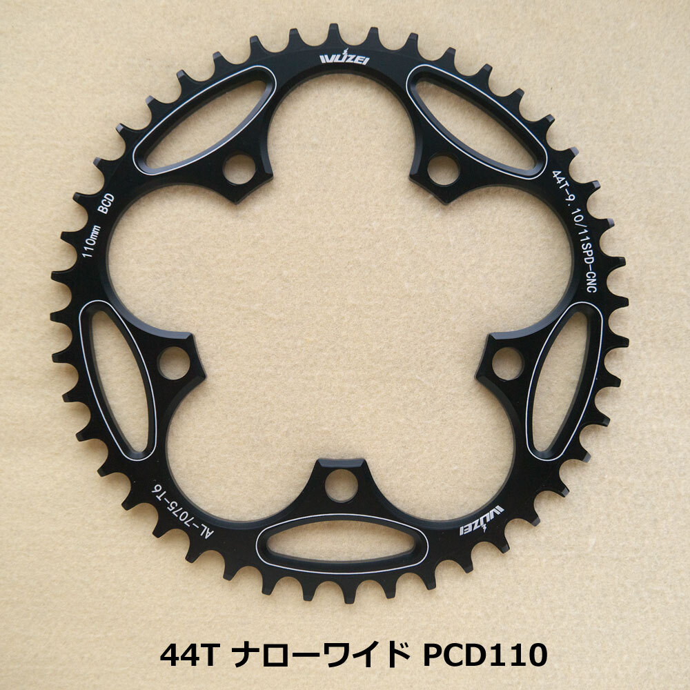 PCD110(5ボルト)のナローワイドチェーンリングです。歯数44Tでフロントシングル専用です。PCDをお間違えのないよう再度ご確認ください。