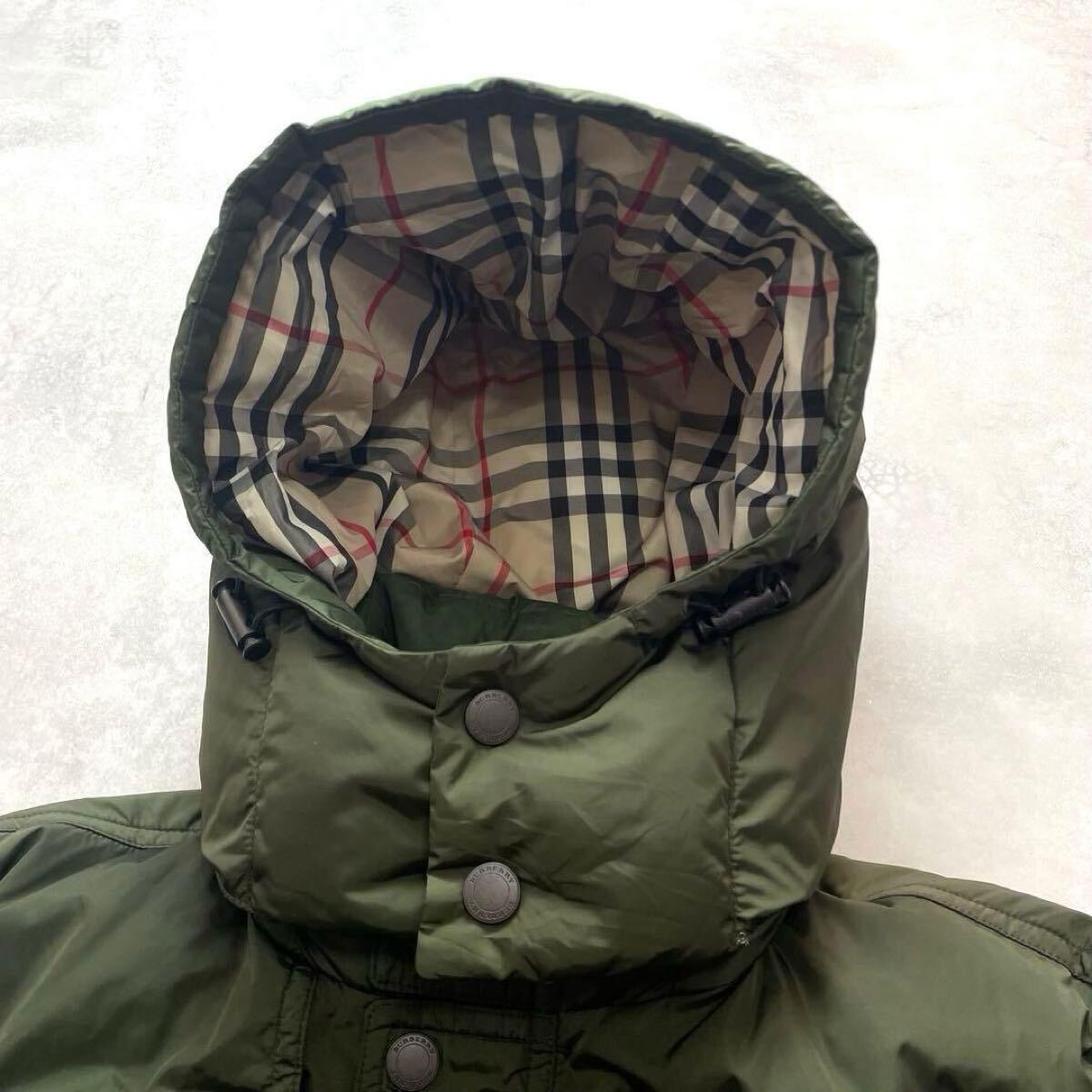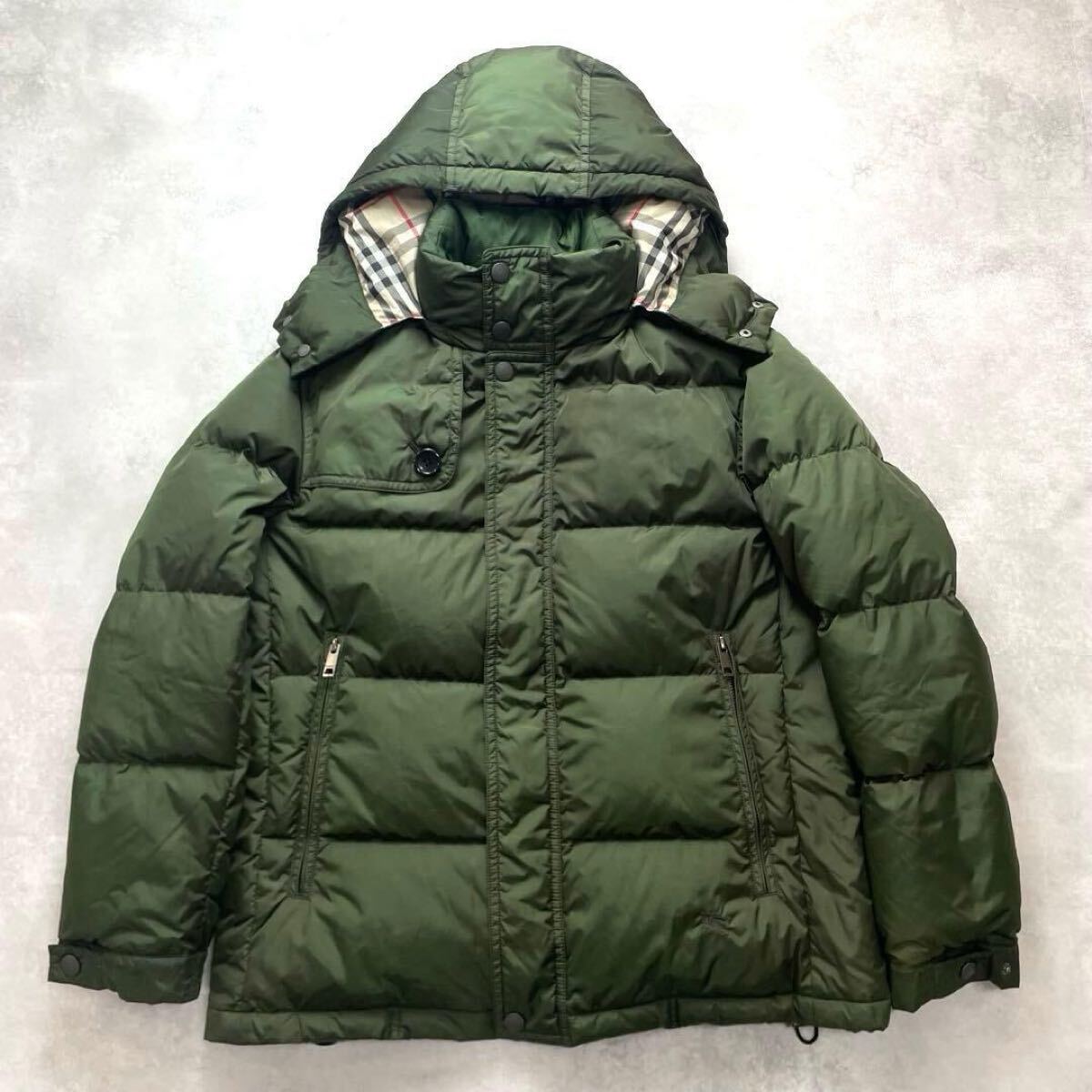 バーバリーロンドンのノバチェックダウンジャケット、希少なカーキカラーのMサイズになります。フロントのディテールがどこかトレンチコートを思わせるクラシックな雰囲気で、バーバリーらしい上品さがしっかり出る一着です。