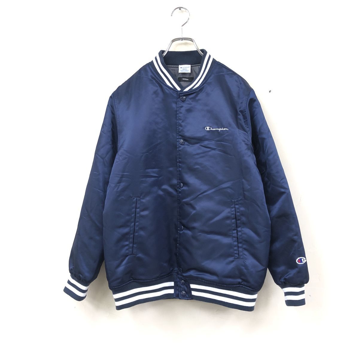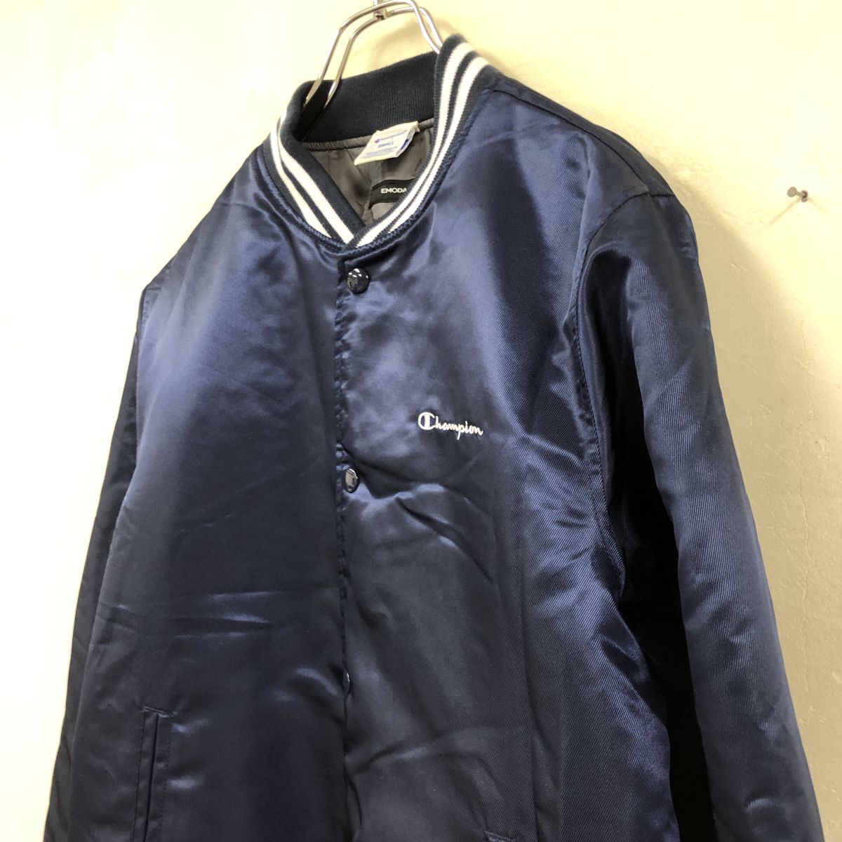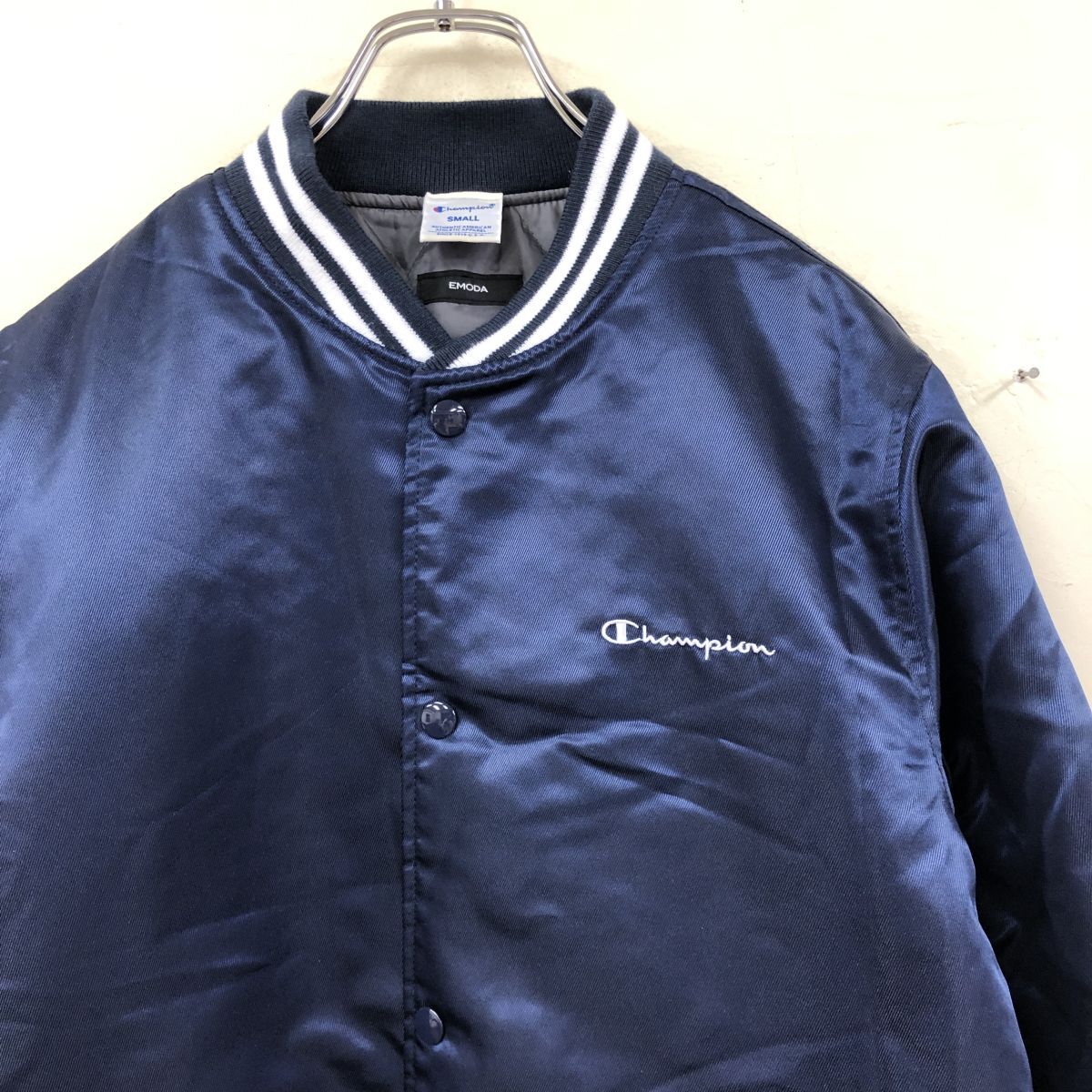 2N1928-Y-N◆Champion EMODA チャンピオン エモダ スタジアムジャンパー スタジャン スナップボタン カジュアル ◆sizeS ネイビー ポリ