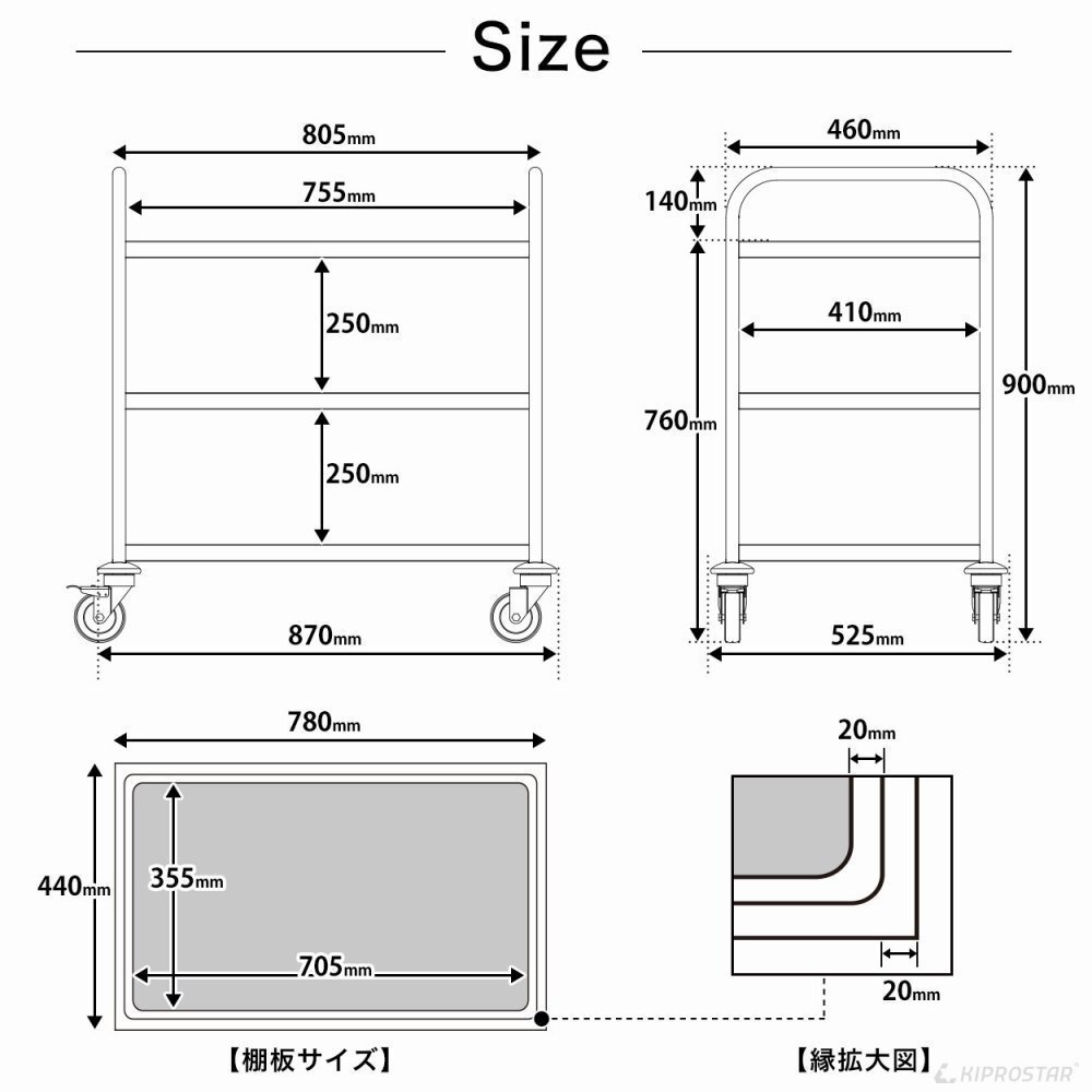 | 仕様 | 3段タイプ キャスター4輪自在、2輪ストッパー付 |